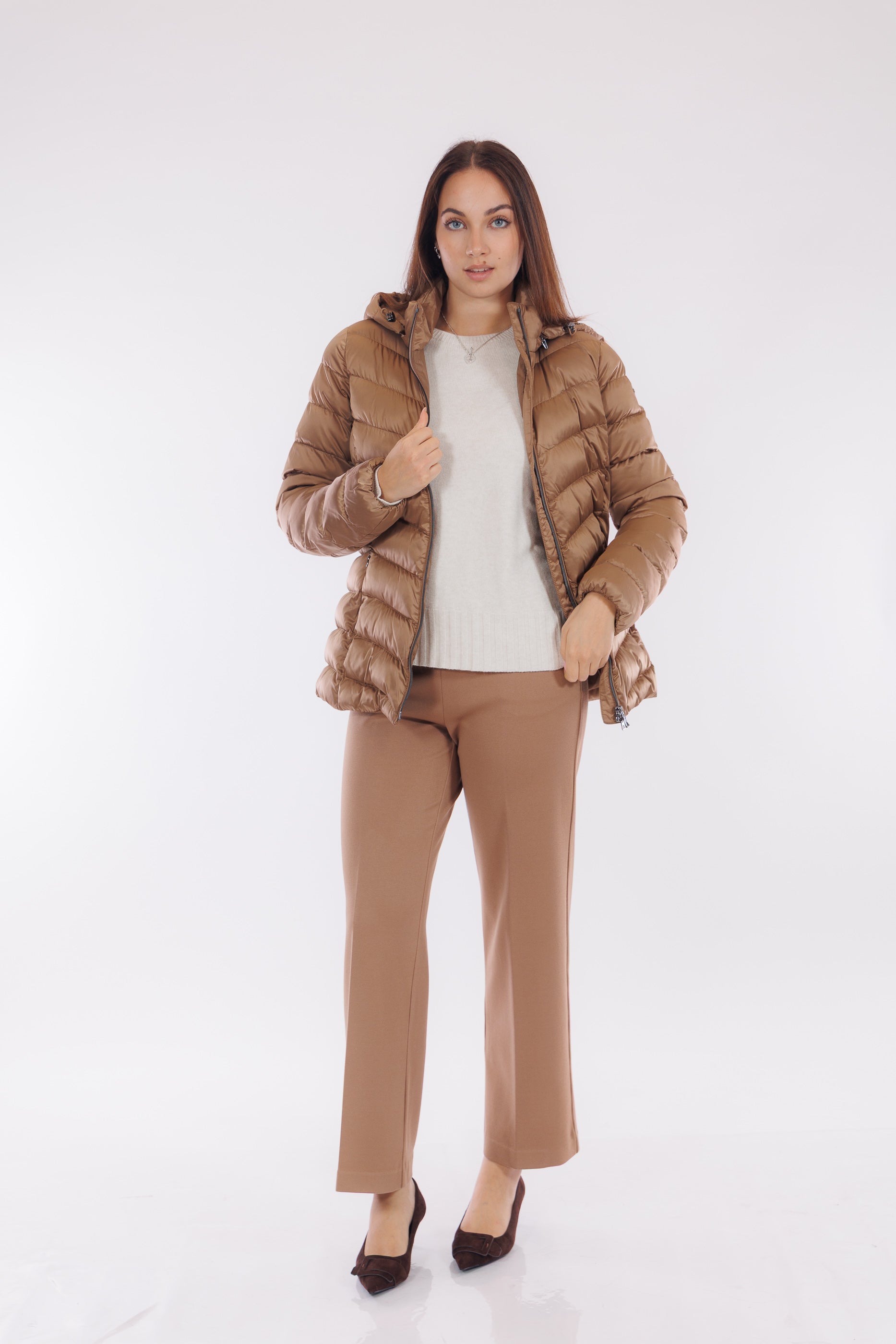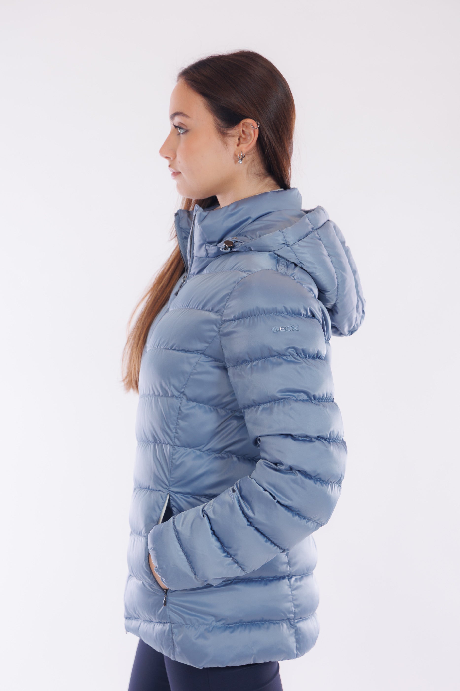Giubbotto eco piumino dalla silhouette moderna e raffinata. Realizzato con materiali riciclati, combina sostenibilità e performance tecniche. Il tessuto lucido esalta la figura grazie anche alla linea sfiancata che enfatizza il punto vita. Dotato di cappuccio staccabile tramite zip e coulisse regolabile che lo circonda, inoltre questo capo ha tasche zippate laterali, molto pratiche. La tecnologia Geox Breathing System garantisce traspirazione ottimale: l'umidità fuoriesce attraverso una fascia di aerazione posizionata sulle spalle, mantenendo un a temperatura ideale al corpo, durante tutto il giorno.