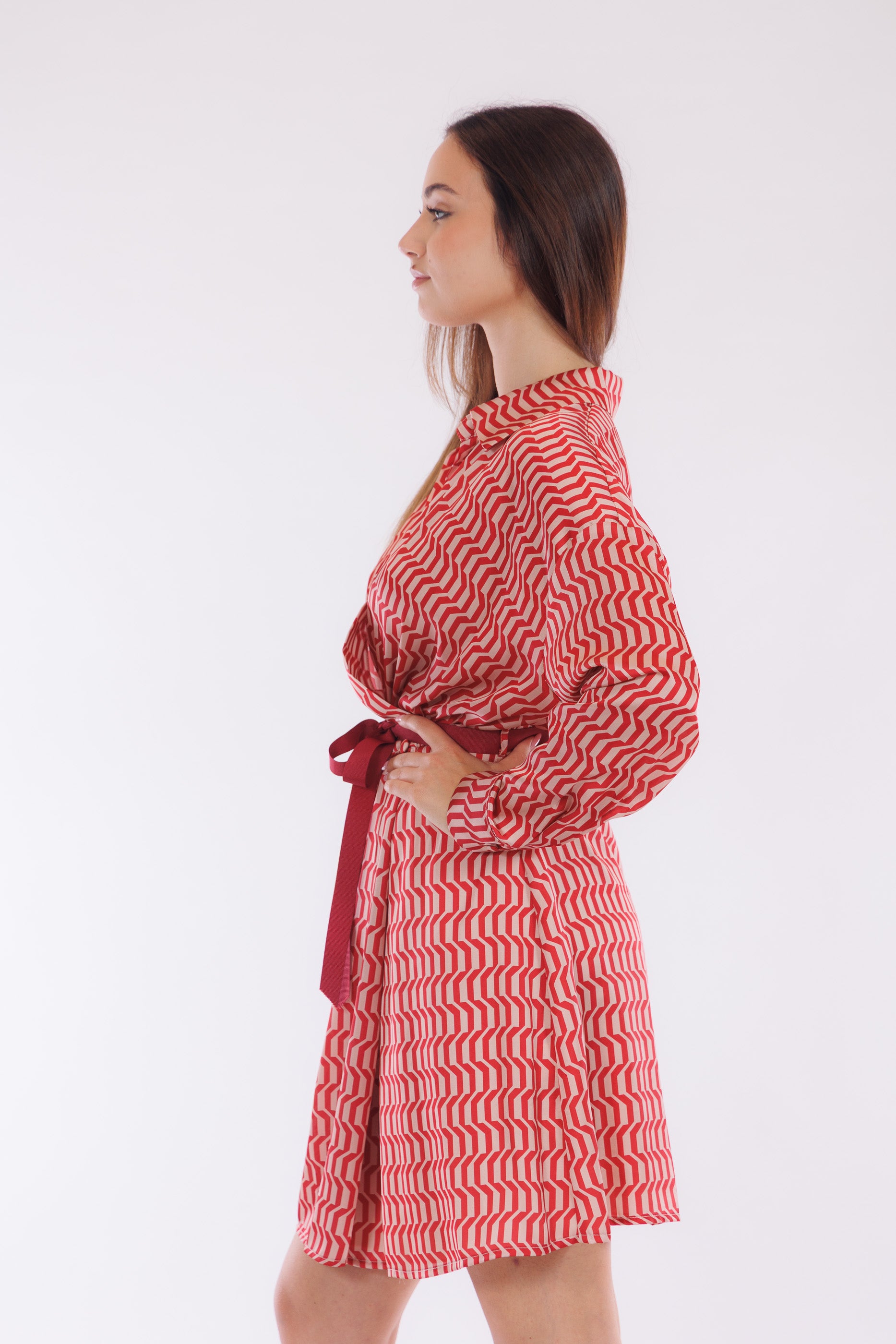 Questo abito portafoglio è perfetto per un look elegante e raffinato. Con la sua chiusura a portafoglio in vita e la cinturina in tessuto con fiocchetto, donerà un effetto più stretto alla tua silhouette. Le maniche lunghe a pipistrello, con spalla scesa, bottoncino sui polsini e il colletto a camicia aggiungono un tocco di classe. Sul colletto presenta un bottoncino che possiamo decidere di tenere chiuso per avere un aspetto più professionale, o lasciare lo scollo a V per un look più sexy.