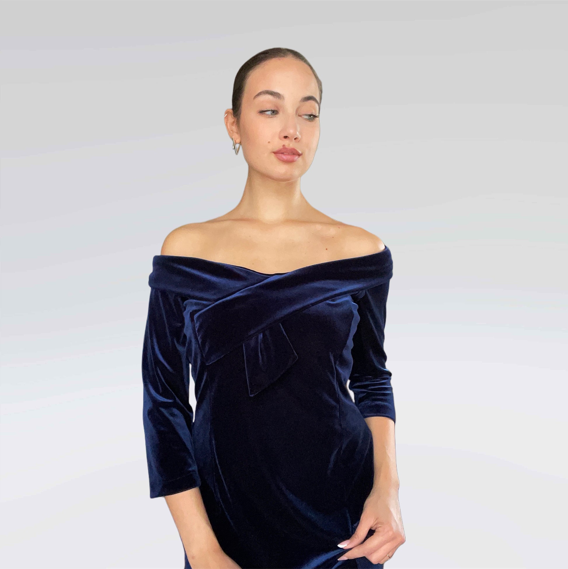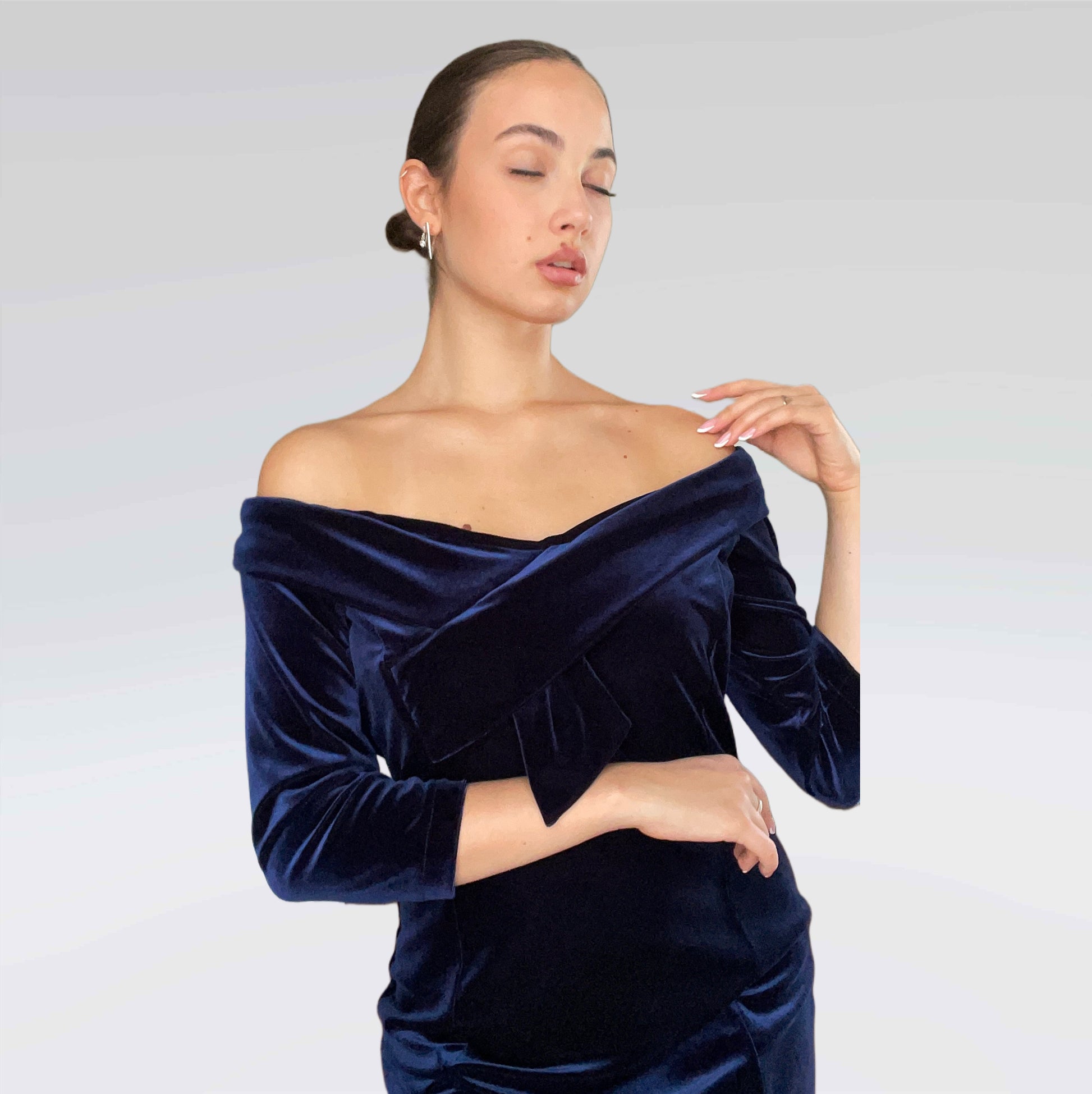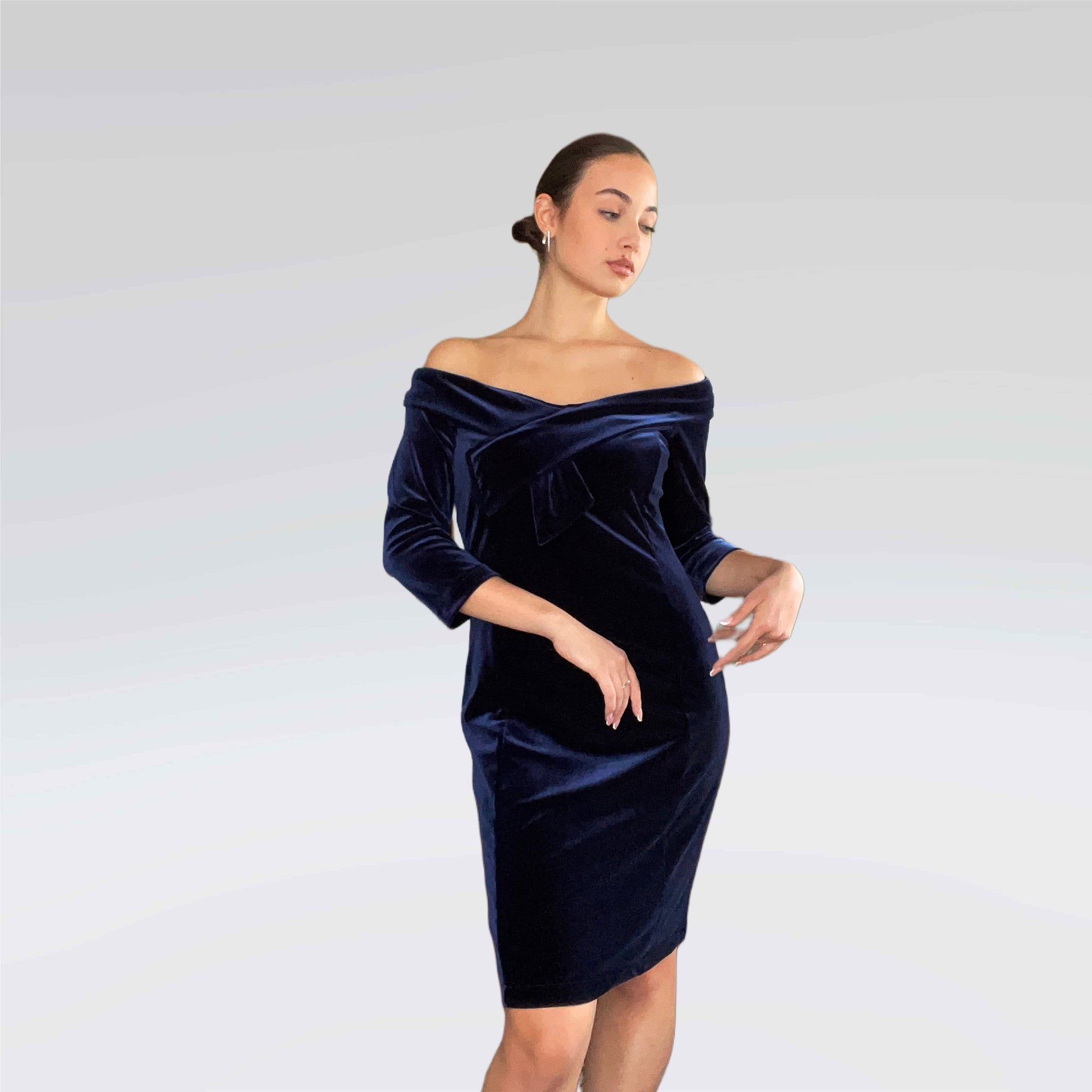 Questo abito in velluto presenta maniche a tre quarti, spalle scoperte e zip posteriore, offre un look elegante e confortevole. Il tessuto di alta qualità garantisce un tocco di lusso mentre il taglio corto e lo spacchetto posteriore lo rende adatto ad ogni stile. Aggiungi questo abito alla tua collezione per un tocco di classe in più.