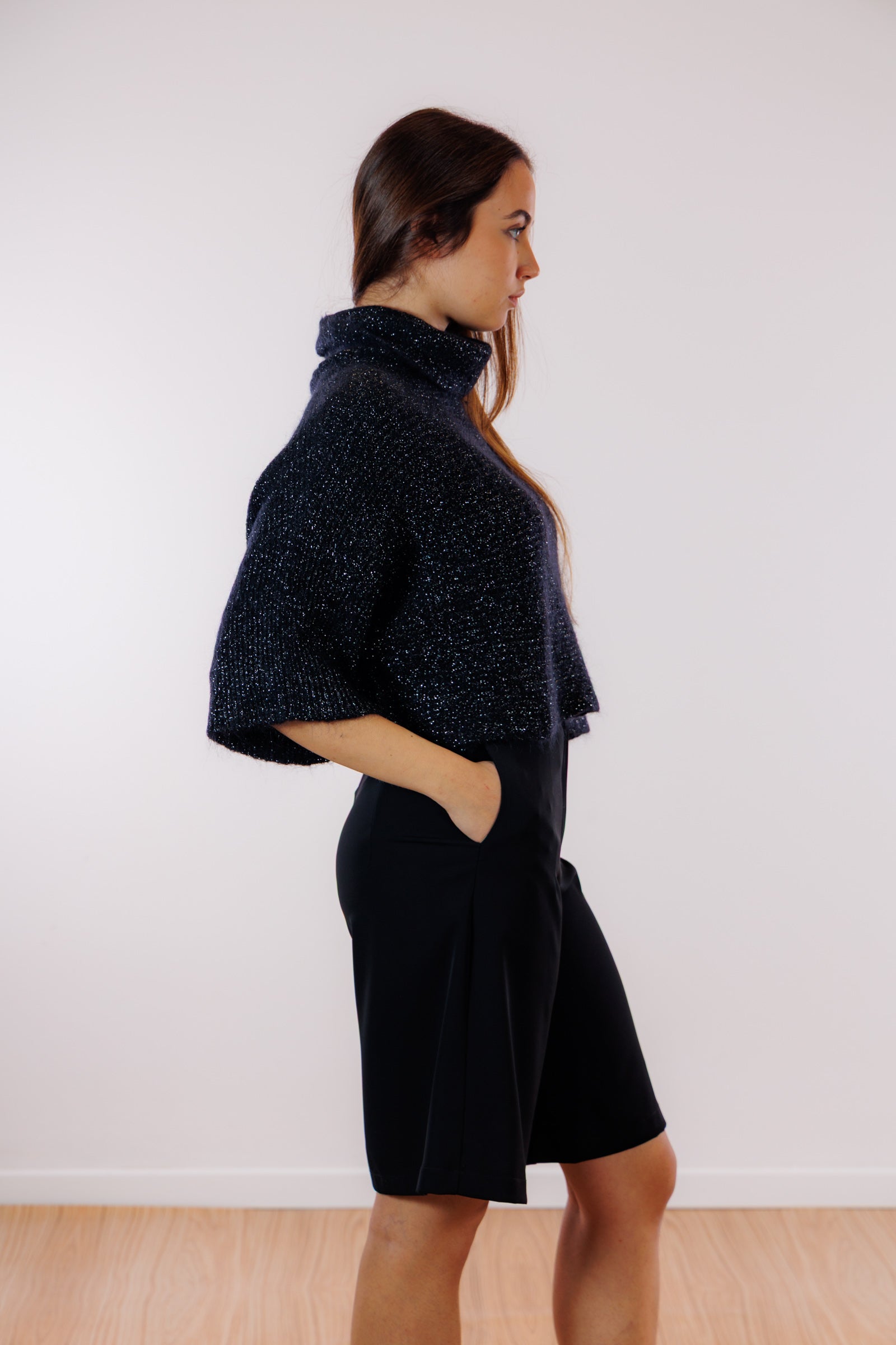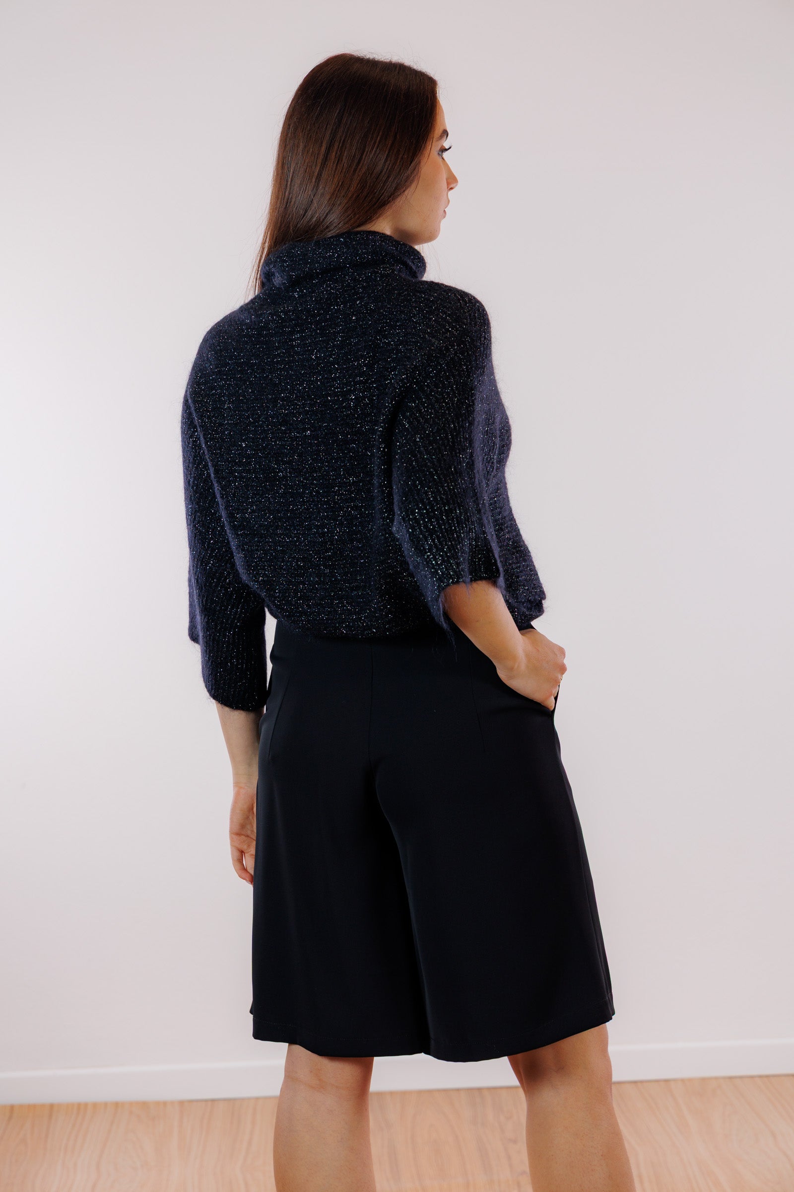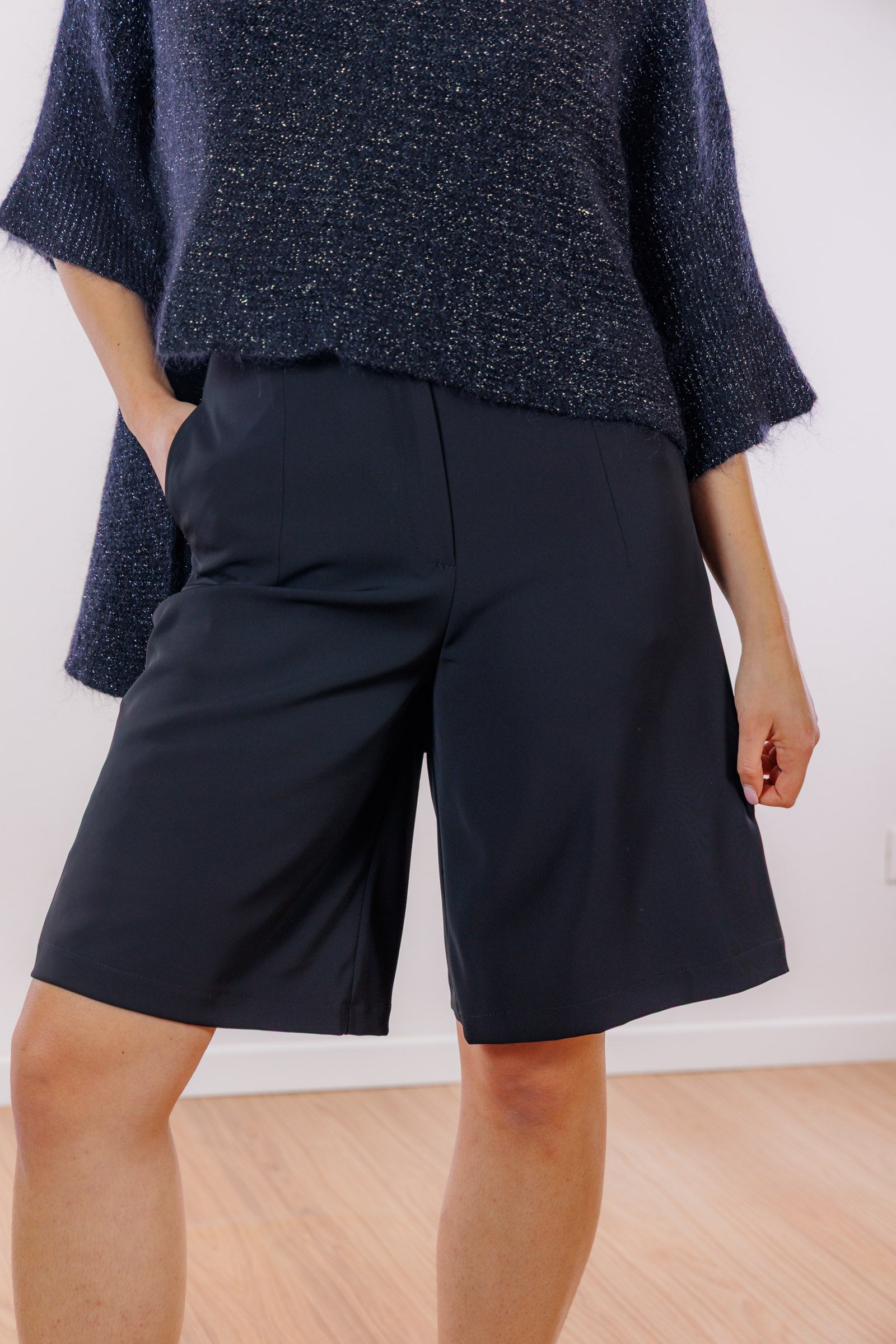 Il bermuda ampio in cadì è l'alternativa elegante perfetta per le tue serate speciali! Dotato ai taschine laterali nascoste, apertura con zip e bottone e passanti per un'eventuale cintura. Inoltre le riprese davanti e dietro donano una vestibilità ottimale.