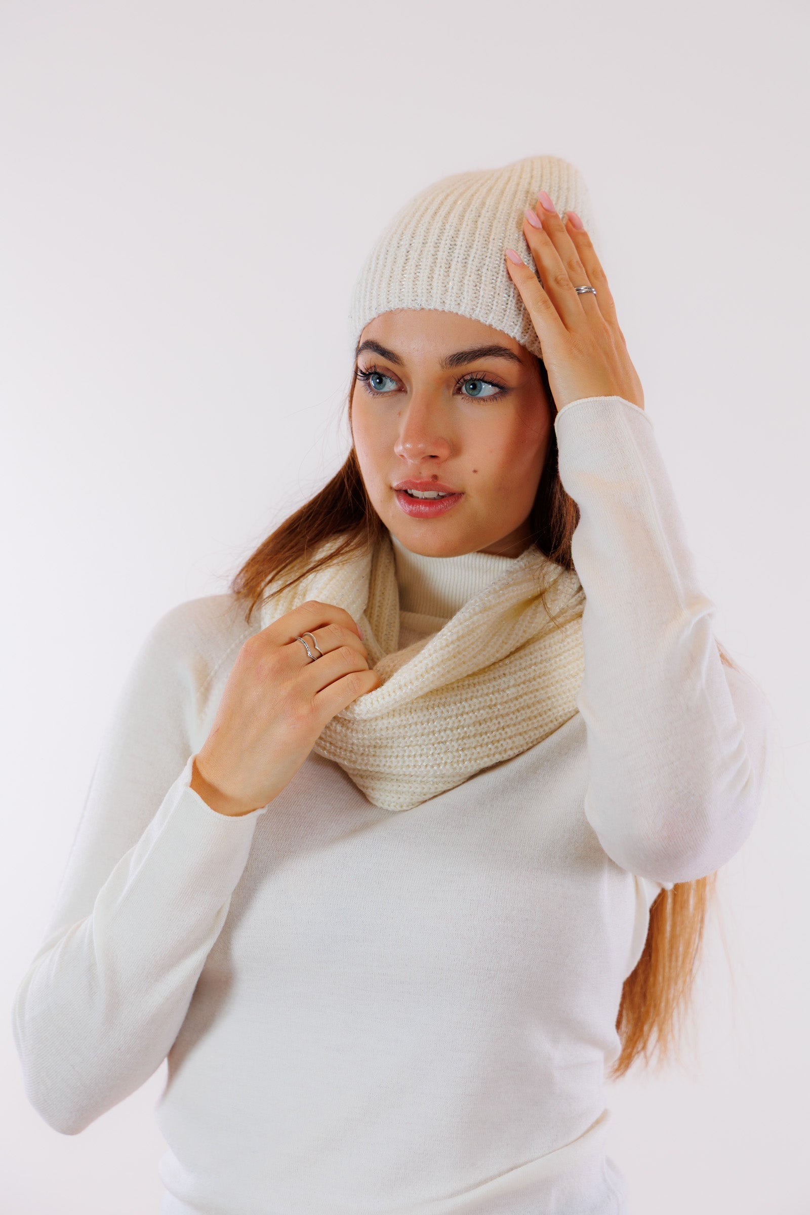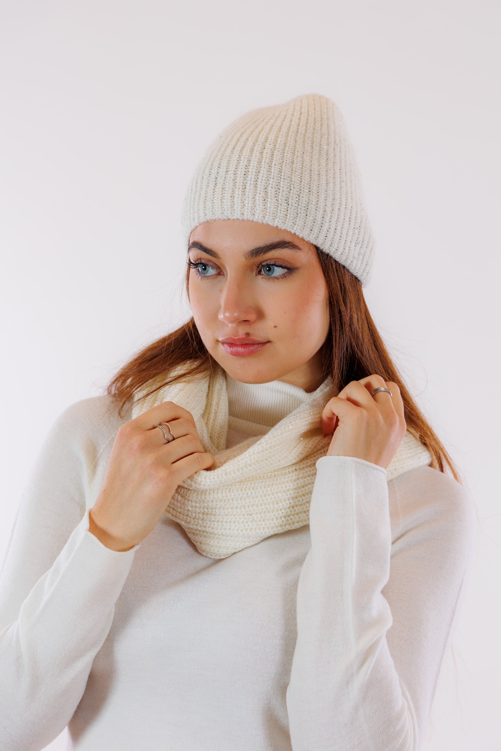 Berretto invernale in morbida cuffia che aderisce perfettamente alla testa, impreziosito da delicate micro paillettes che catturano la luce con eleganza. Il design aderente garantisce calore e comfort durante i mesi più freddi, mantenendo uno stile sofisticato. Per un look coordinato e raffinato, abbina questo berretto allo "Scaldacollo micro paillettes" nella medesima tonalità, creando un ensemble invernale completo e armonioso.