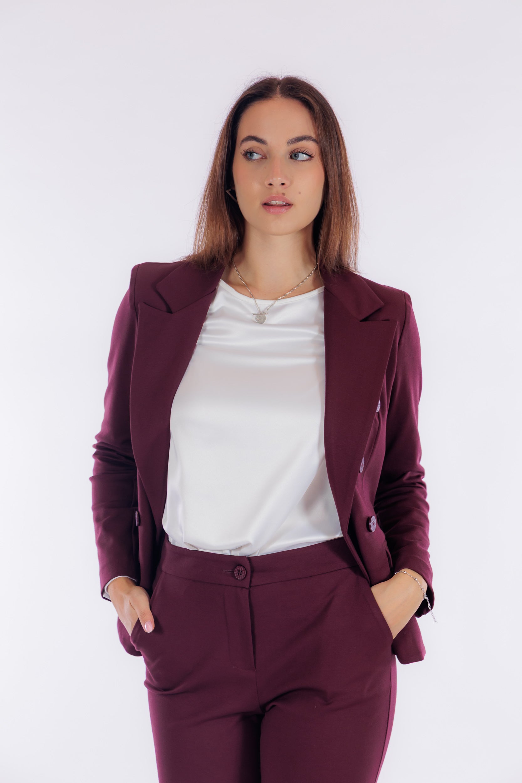 Consigliamo di completare il look tailleur, abbinando il "Pantalone ampio punto milano", oppure il "Pantalone stretto punto milano", della stessa colorazione, di No-Nà.