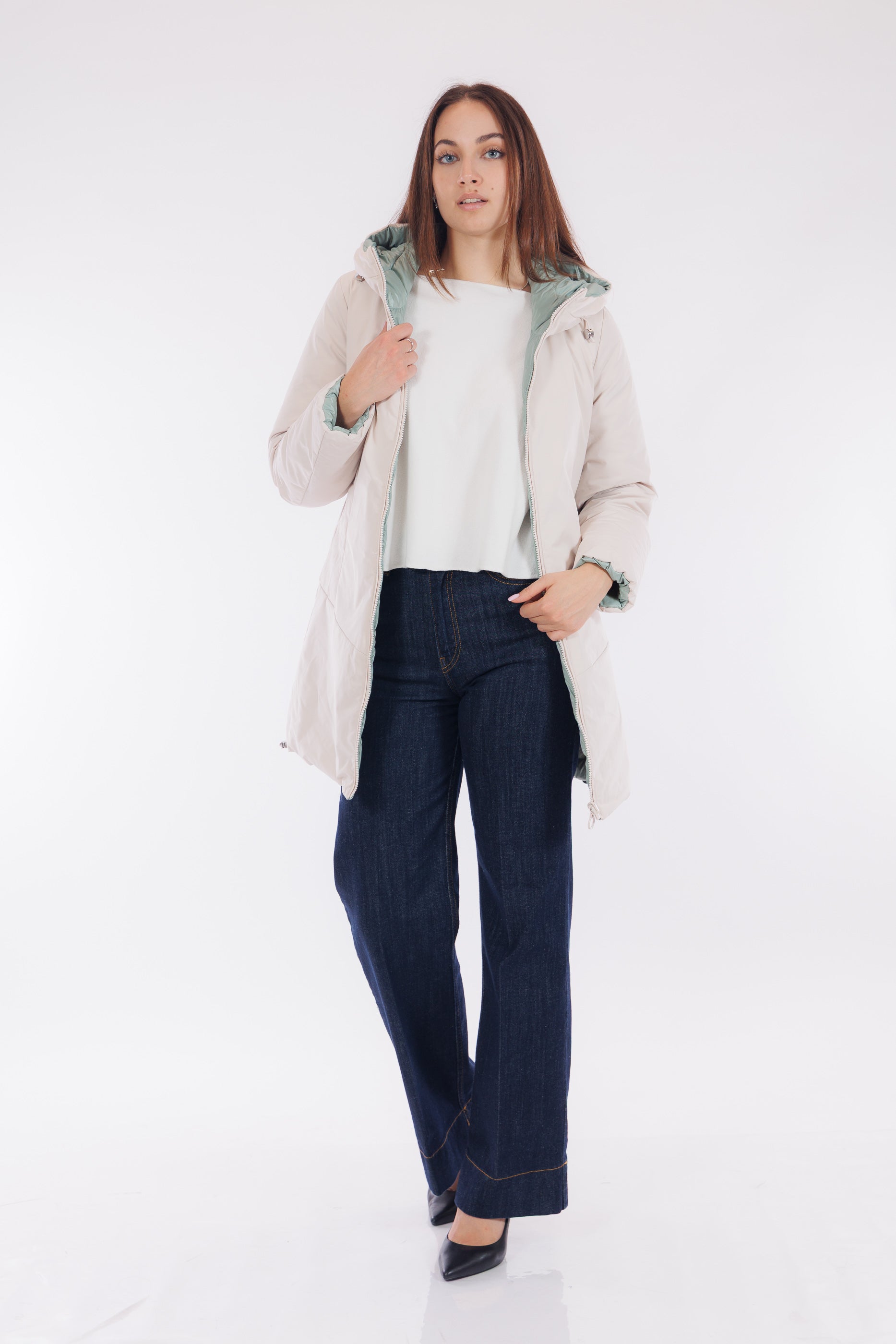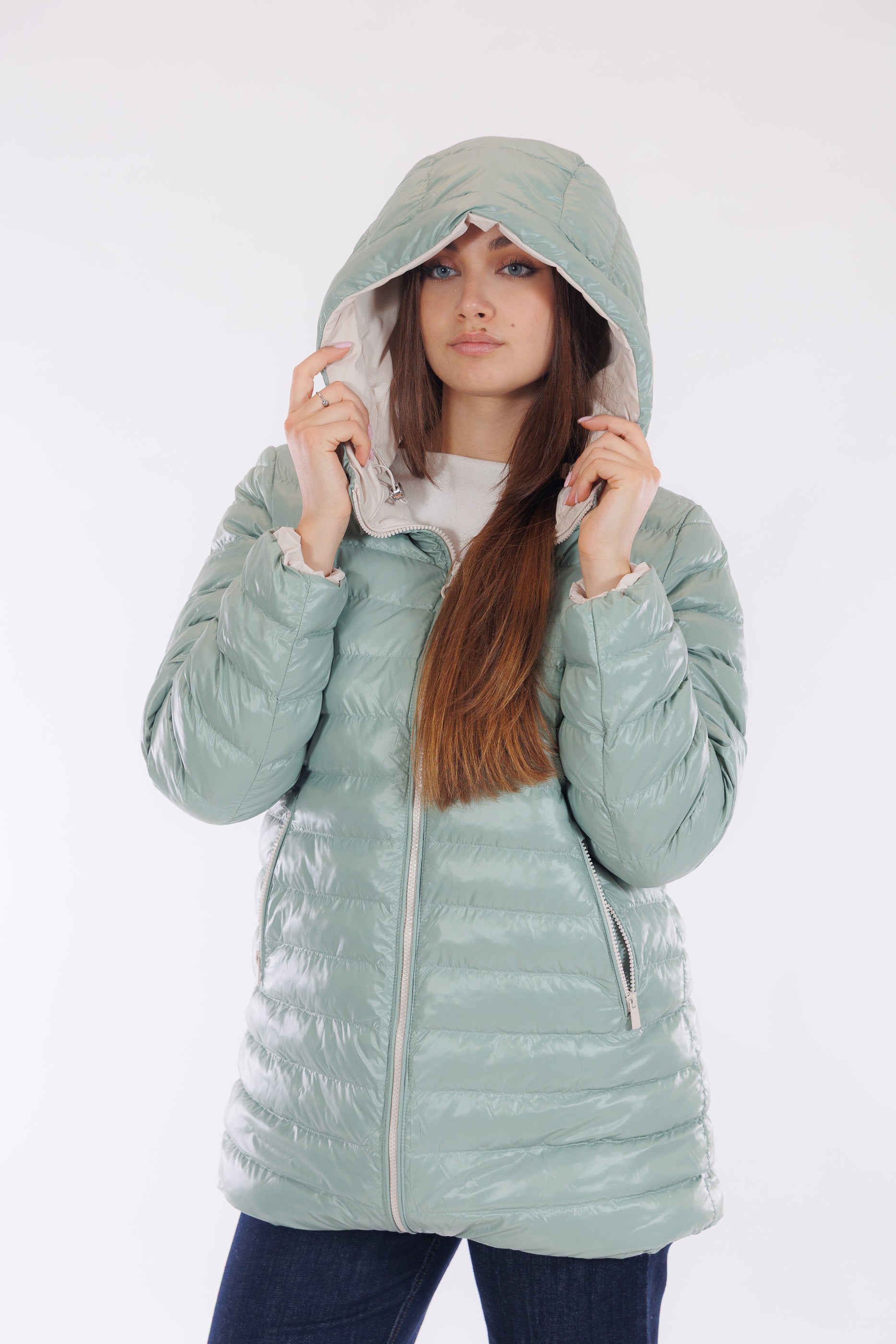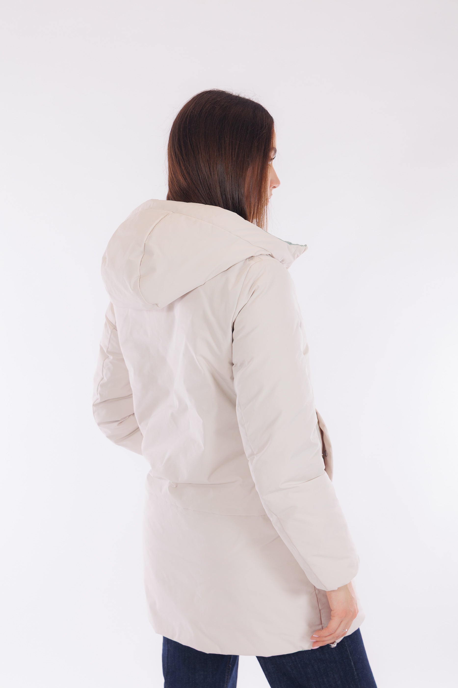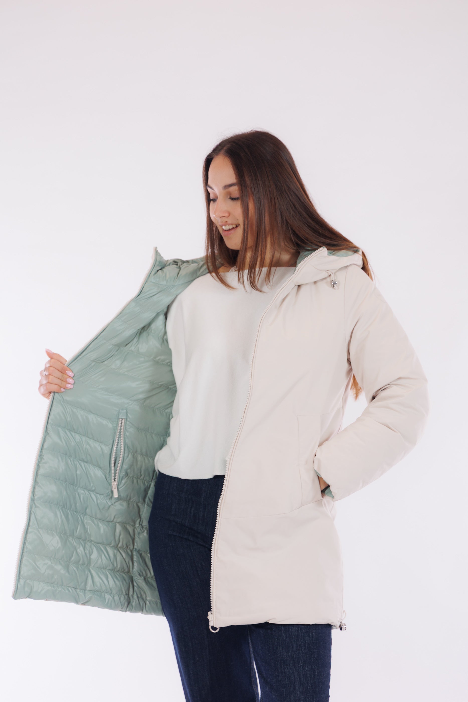 Il giaccone Spherica di Geox è un capo double face versatile e tecnico. Il lato più chiaro, in tessuto tecnico impermeabile e liscio, presenta profonde tasche oblique, cappuccio con coulisse regolabile, che si ripete anche sul fondo del giaccone, per un fit personalizzato e un effetto leggermente bombato. L'altro lato, imbottito in un elegante tono Acqua Marina, offre tasche profonde chiuse da zip per maggiore praticità. Con lunghezza a metà coscia e dotato del "Breathing System" di Geox, che garantisce traspirabilità ottimale mantenendo il corpo asciutto da umidità e sudore. Una scelta funzionale e distintiva per affrontare le condizioni meteo con stile.