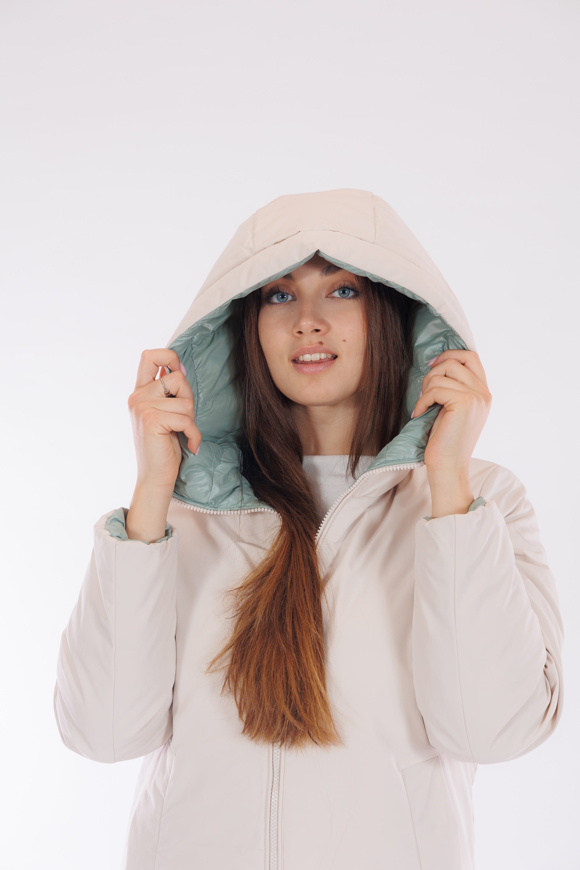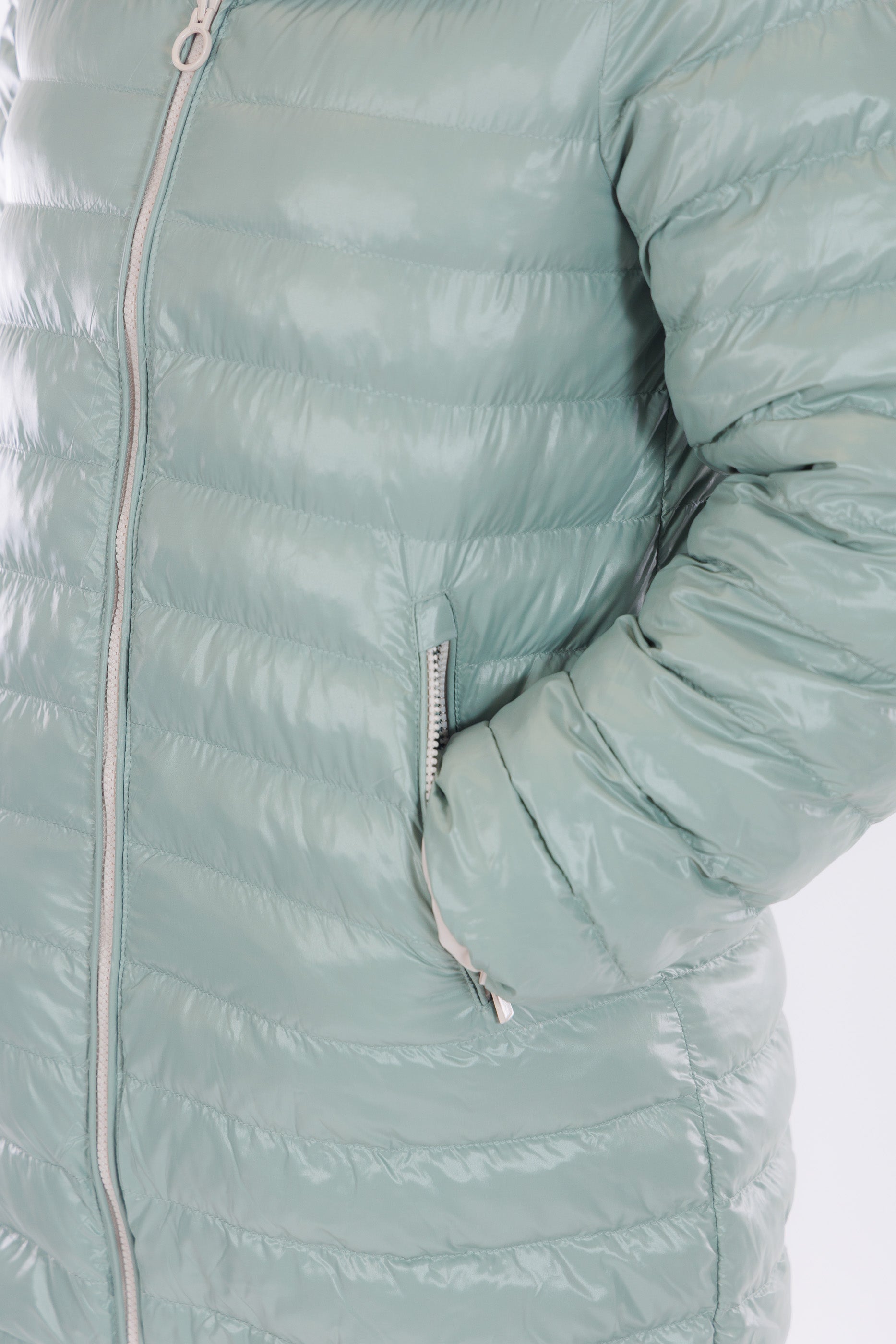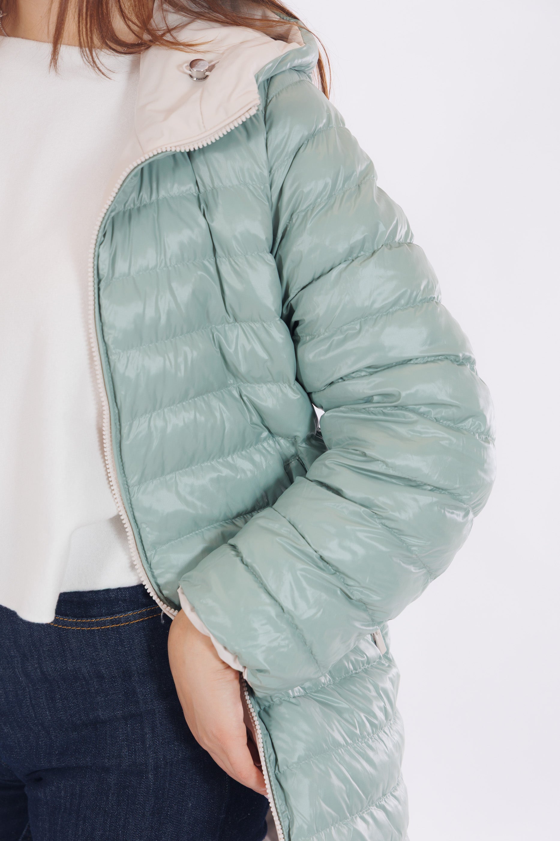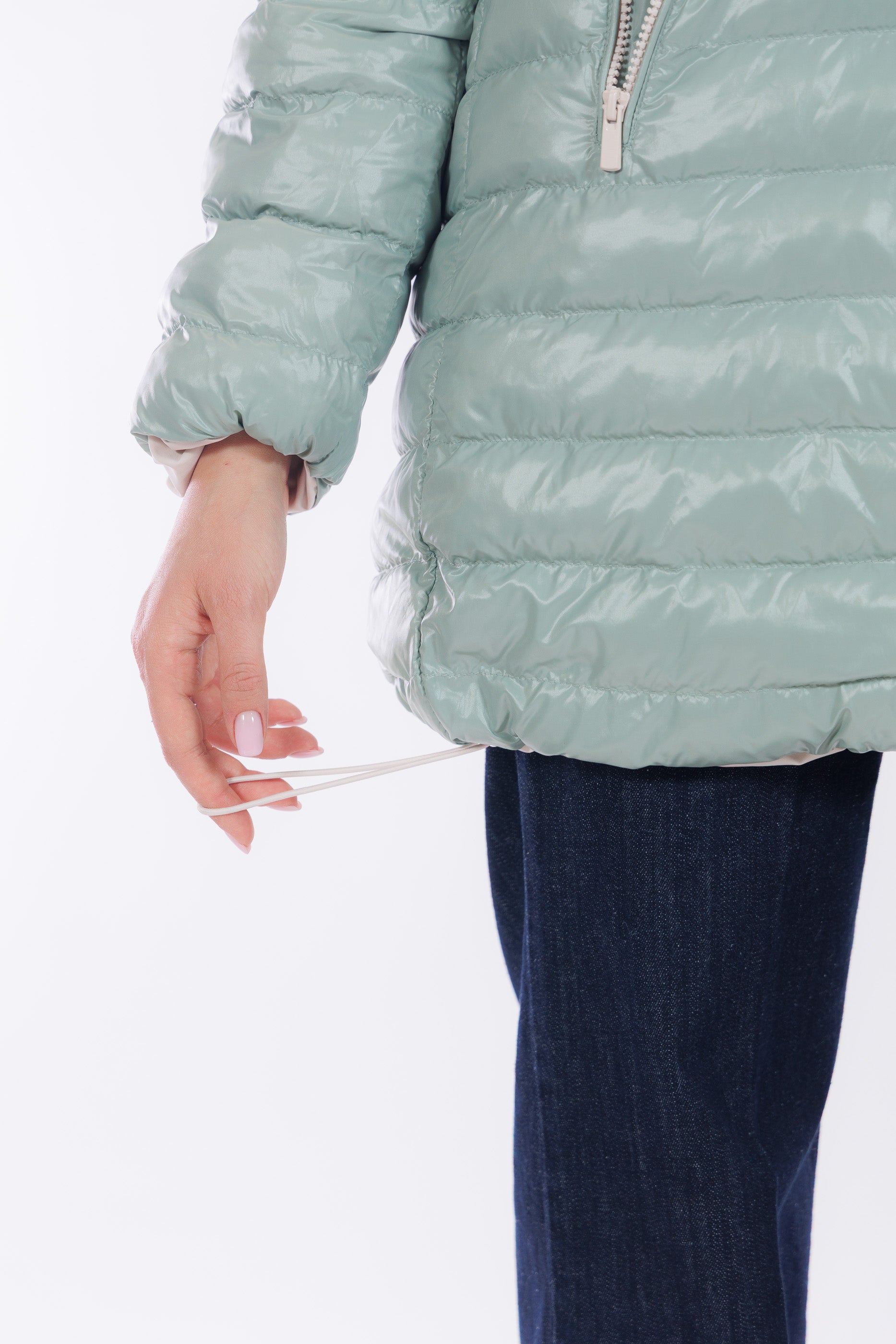 Il giaccone Spherica di Geox è un capo double face versatile e tecnico. Il lato più chiaro, in tessuto tecnico impermeabile e liscio, presenta profonde tasche oblique, cappuccio con coulisse regolabile, che si ripete anche sul fondo del giaccone, per un fit personalizzato e un effetto leggermente bombato. L'altro lato, imbottito in un elegante tono Acqua Marina, offre tasche profonde chiuse da zip per maggiore praticità. Con lunghezza a metà coscia e dotato del "Breathing System" di Geox, che garantisce traspirabilità ottimale mantenendo il corpo asciutto da umidità e sudore. Una scelta funzionale e distintiva per affrontare le condizioni meteo con stile.