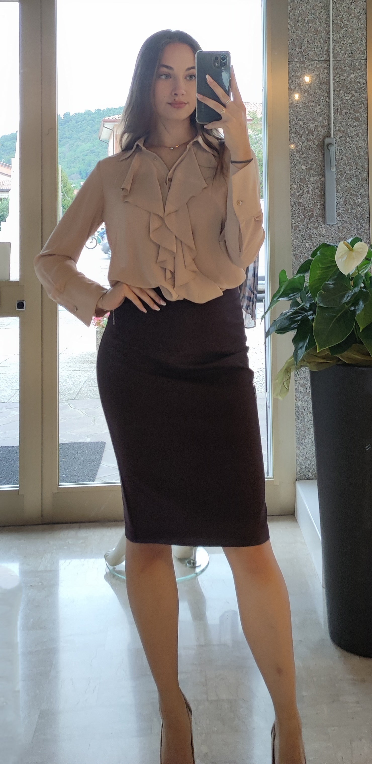 Questa gonna tubino è un must-have per il tuo guardaroba. Con la sua lunghezza sotto il ginocchio e il suo modello aderente, ti farà sentire elegante e sofisticata. La comoda apertura dietro con zip e lo spacchetto centrale aggiungono un tocco di femminilità, rendendola perfetta per ogni occasione.
