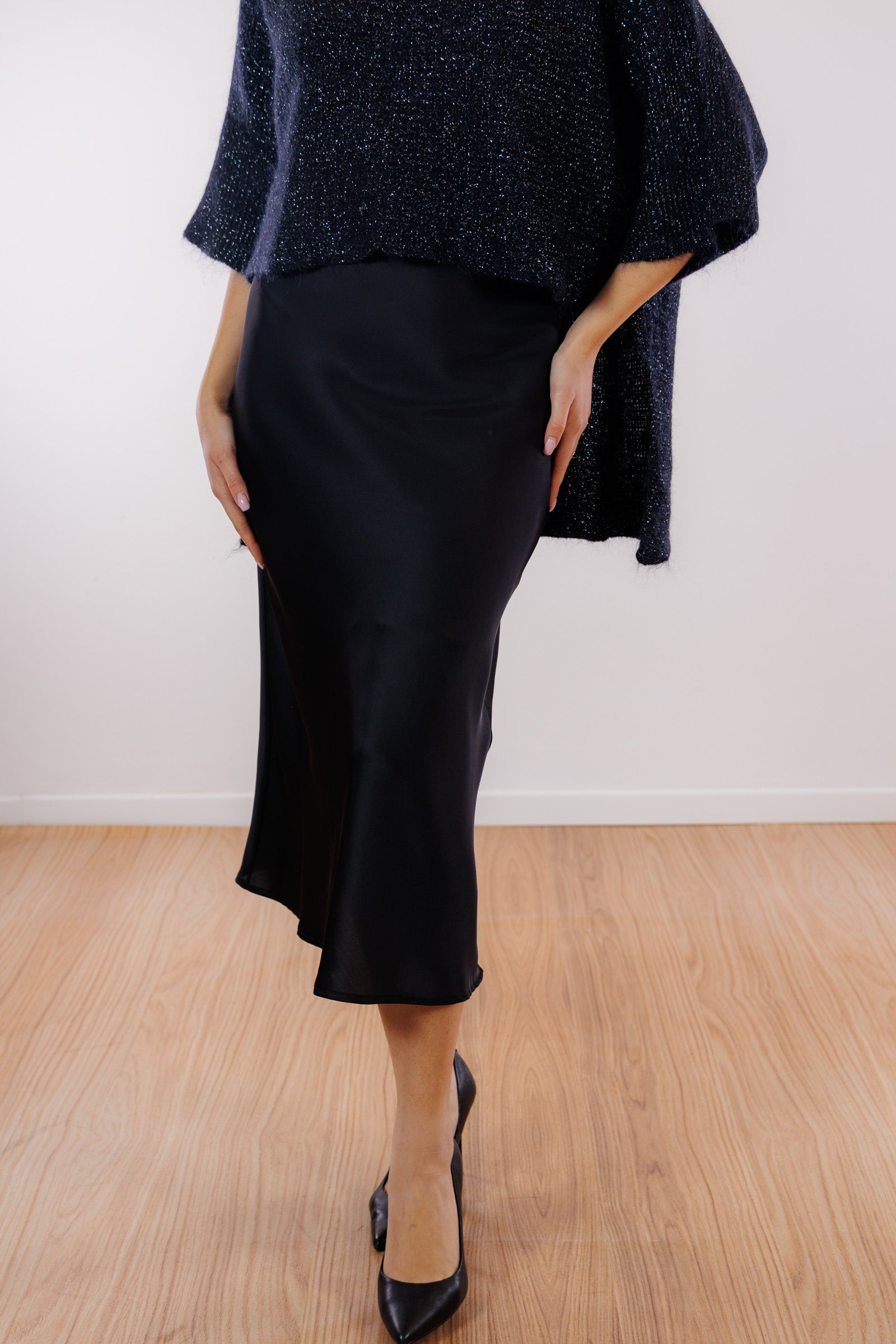 Questa gonna longuette in raso satin è perfetta per un look elegante e sofisticato. Il tessuto in raso dona un effetto satinato, mentre l'elastico in vita la rende comoda da indossare. Leggermente svasata e dotata di fodera, questa gonna valorizza la silhouette in modo delicato ed essenziale. Il must-have per ogni guardaroba fashion.