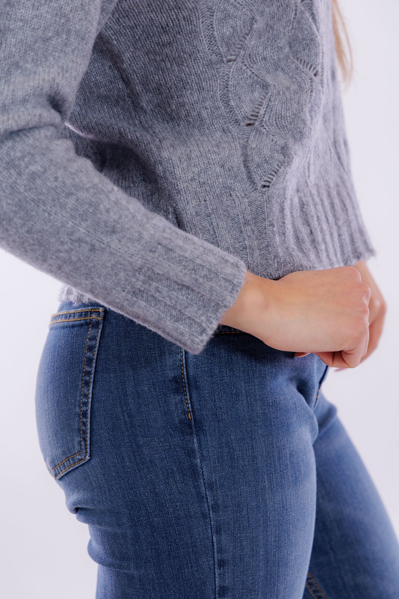 La maglia in lana vergine merinos extrafine è perfetta per i mesi più freddi. Il collo alto a ciambella e la lavorazione a trecce davanti e dietro conferiscono un tocco elegante e raffinato. Le maniche lunghe con lavorazione a coste inglesi e la vestibilità ampia la rendono comoda e calda.