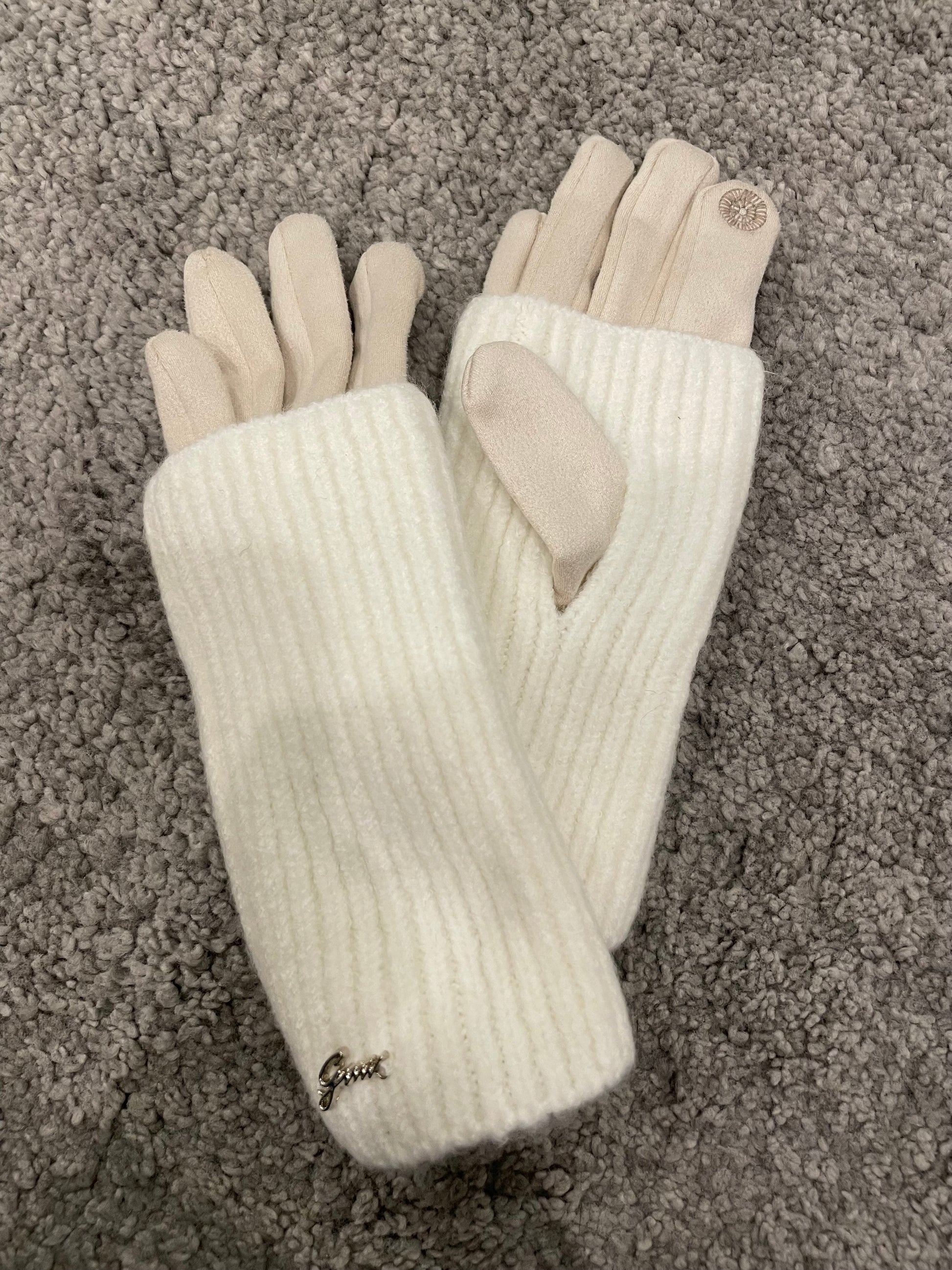Sono imperdibili i guanti rivestiti di morbido tessuto eco camoscio. Per rimanere più caldi si può indossare anche il manicotto sopra, o per un look più pratico è possibile sfilare il manicotto e indossarlo da solo. 3 modi in 1!