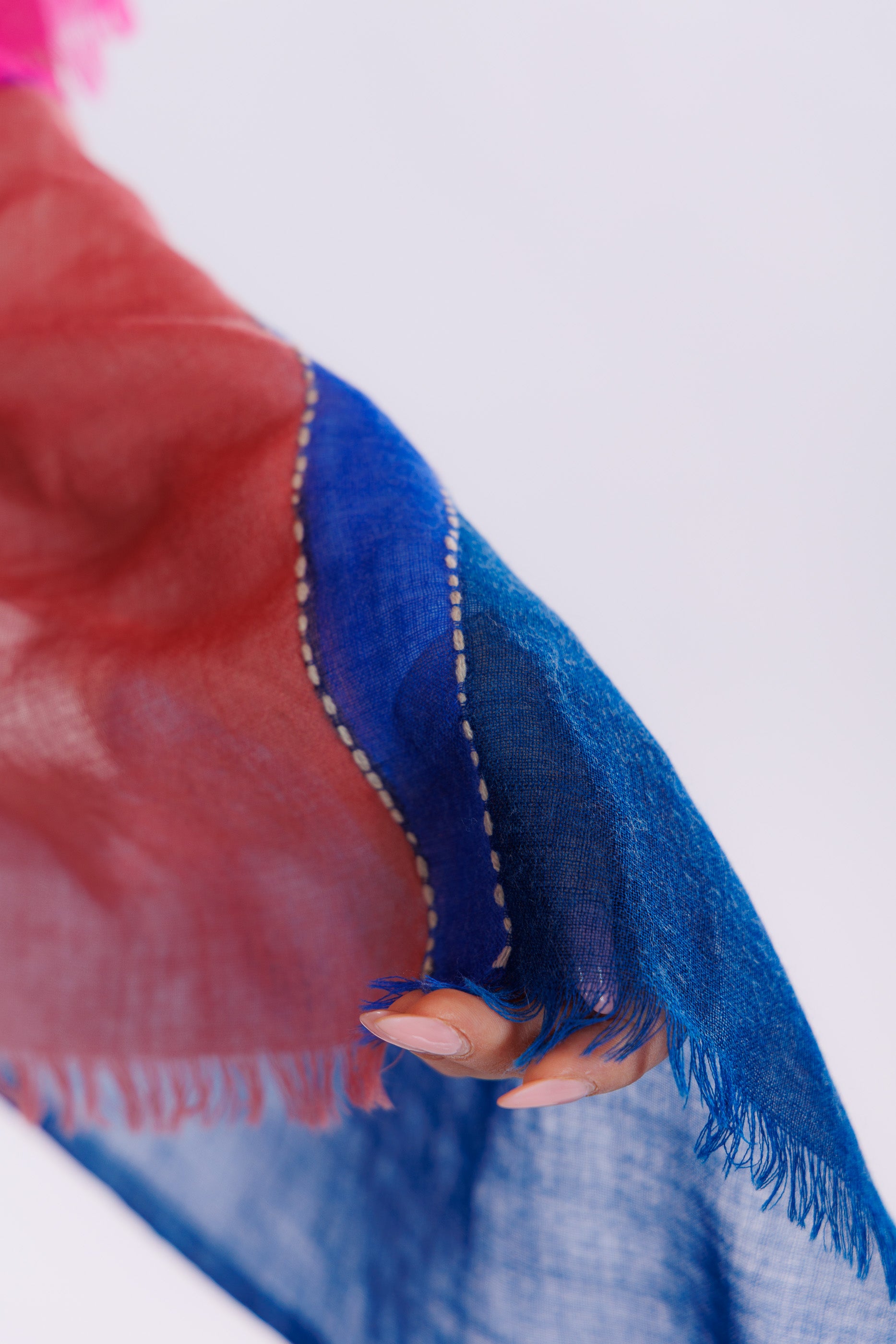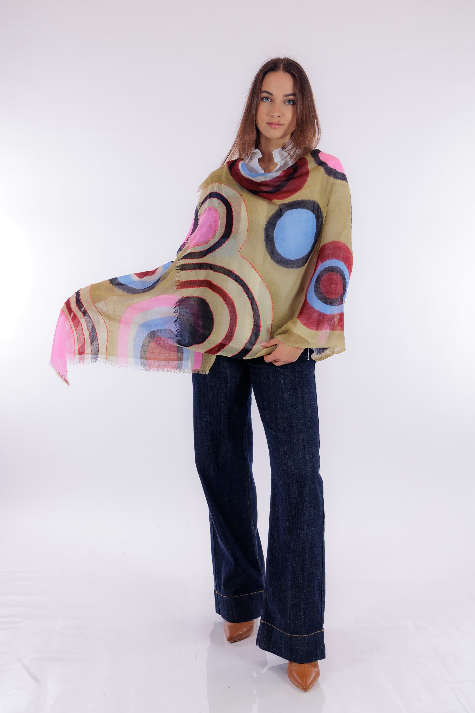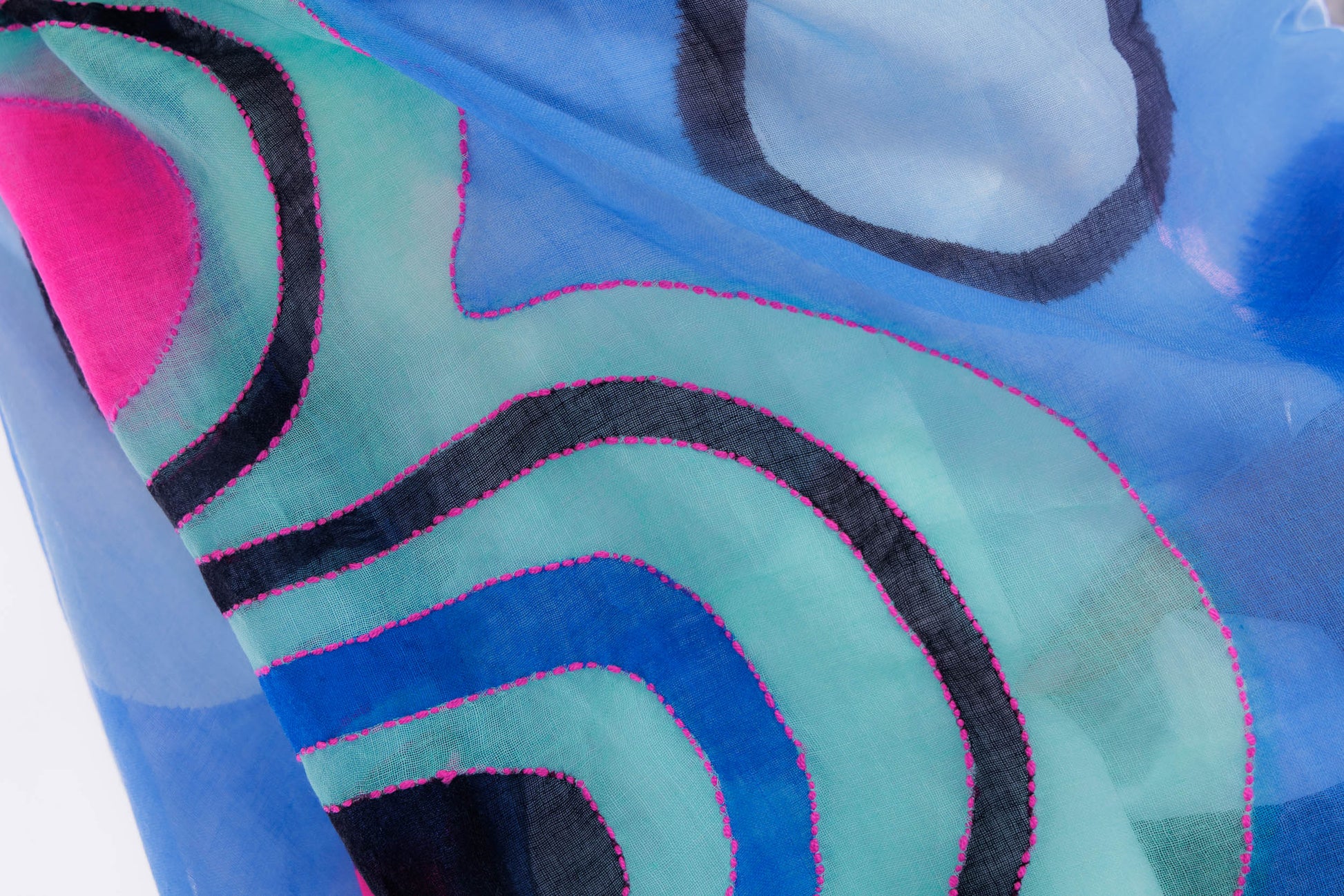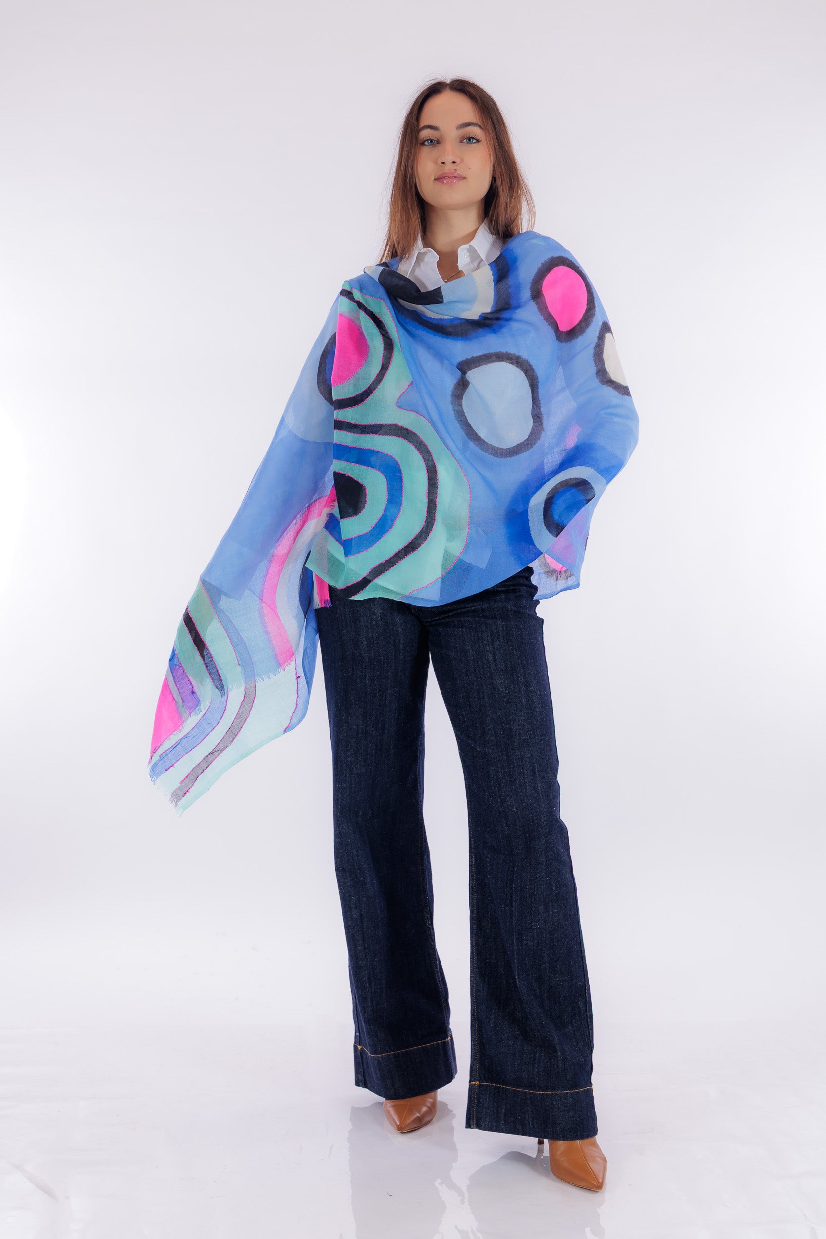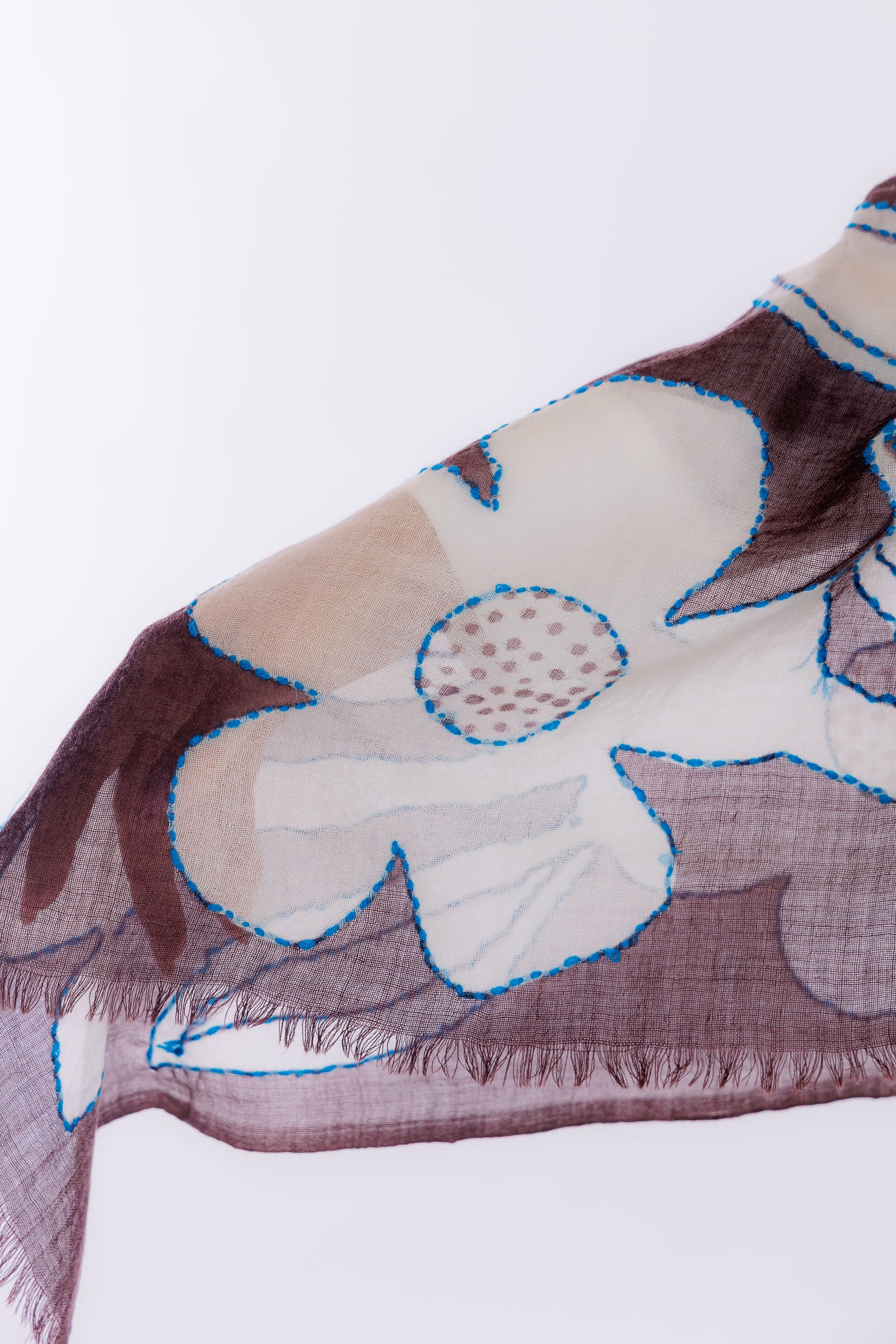 Elegante e morbidissima sciarpa disponibile in varie fantasie. Realizzata in pura lana, ricamata e dipinta a mano.