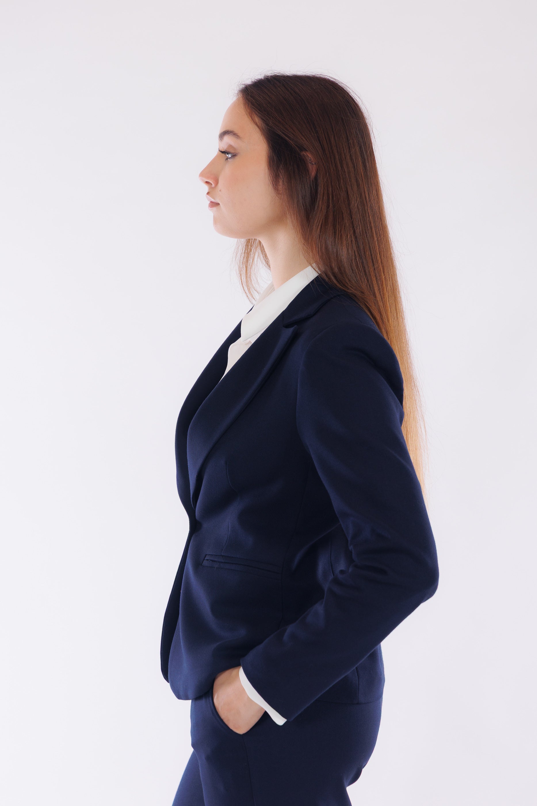 Scopri la nostra elegante giacca monopetto ad un bottone, con tasche finte a filo e rever leggermente stondati. Le riprese sul seno esalavano una silhouette sfiancata e la giacca è realizzata in tessuto pregiato caratterizzato da un'armatura diagonale. Coordinato con i nostri pantaloni "Pantalone chinos diagonale" e "Pantalone palazzo diagonale", sempre del brand Studio Sdb.