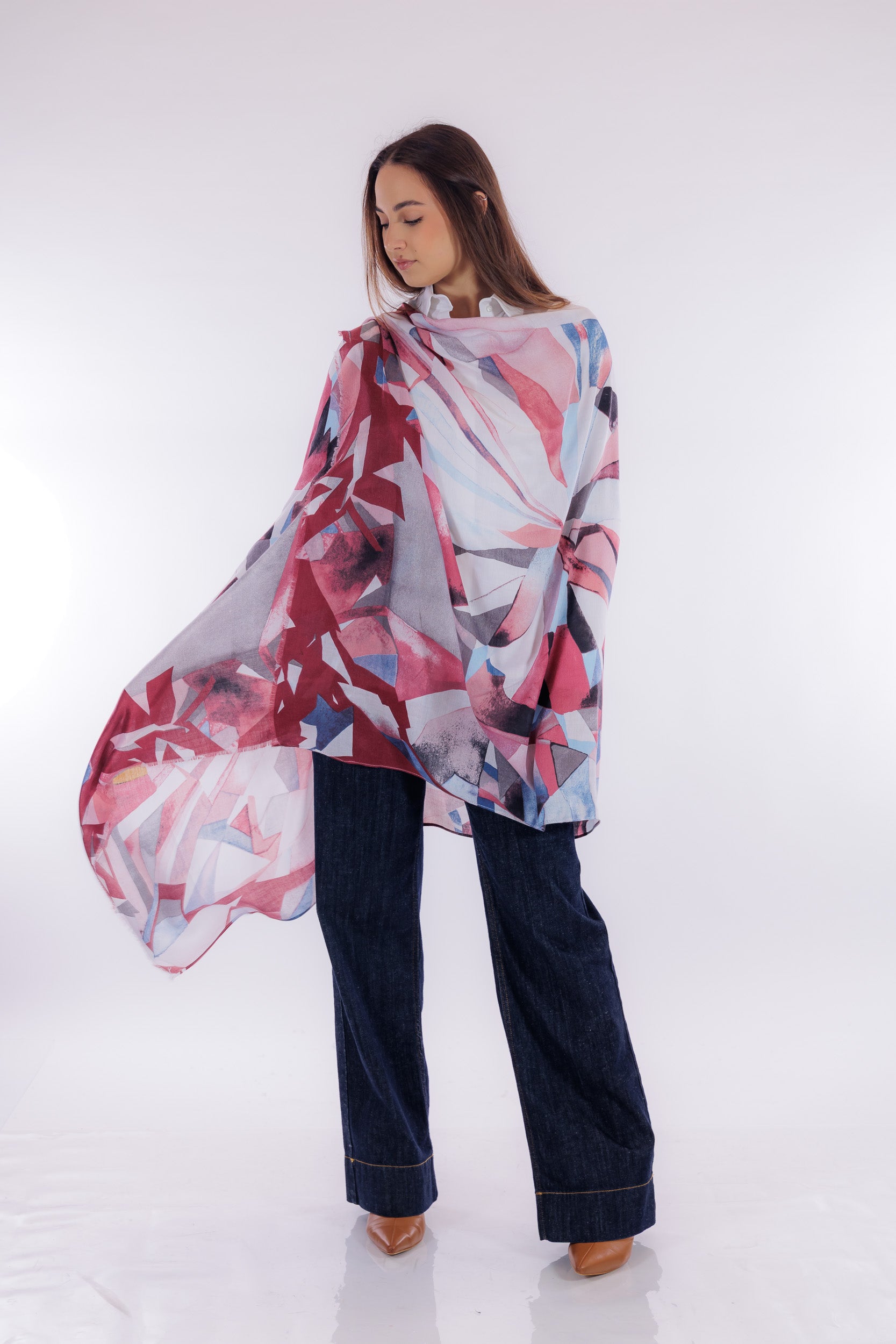 Stola in fantasia diamante, realizzata in un mix di viscosa e poliestere per garantire leggerezza e durata è ideale per la mezza stagione.