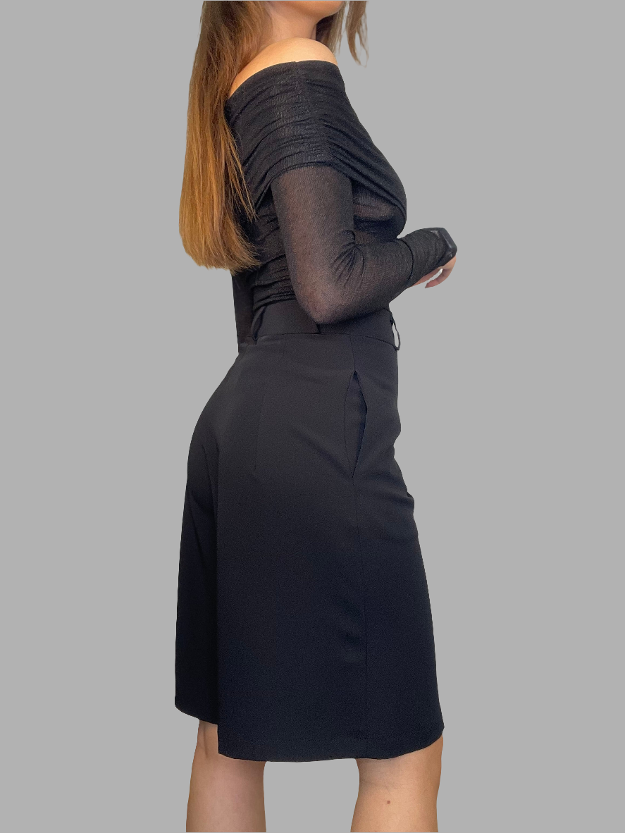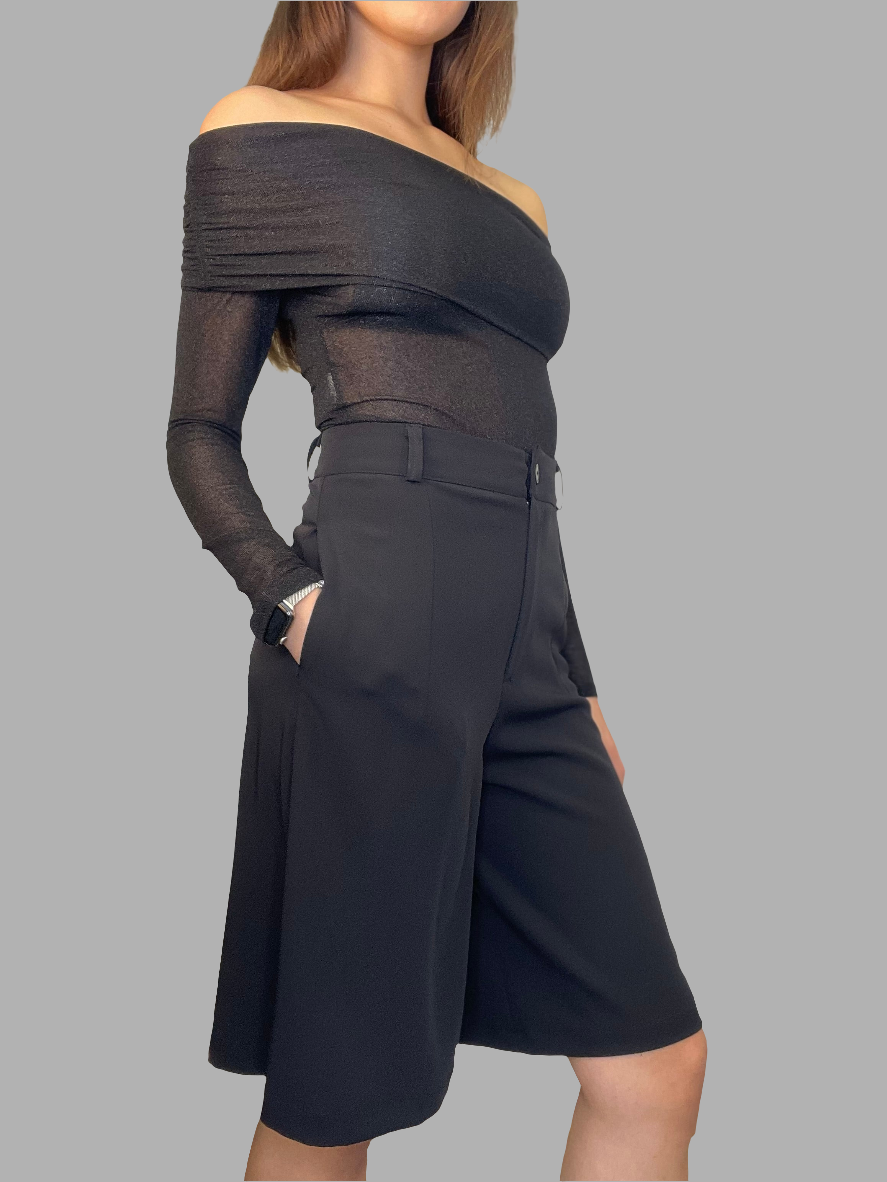 Il bermuda ampio in cadì è l'alternativa elegante perfetta per le tue serate speciali! Dotato ai taschine laterali nascoste, apertura con zip e bottone e passanti per un'eventuale cintura. Inoltre le riprese davanti e dietro donano una vestibilità ottimale.