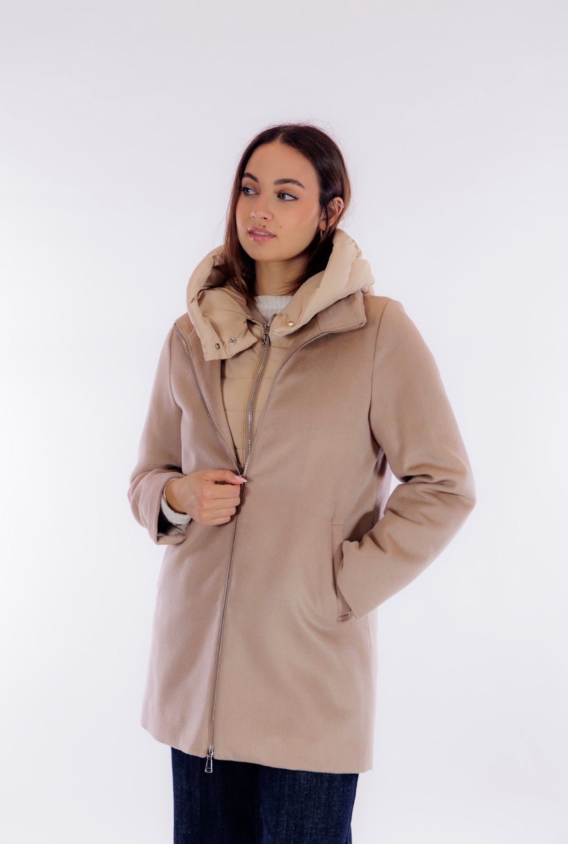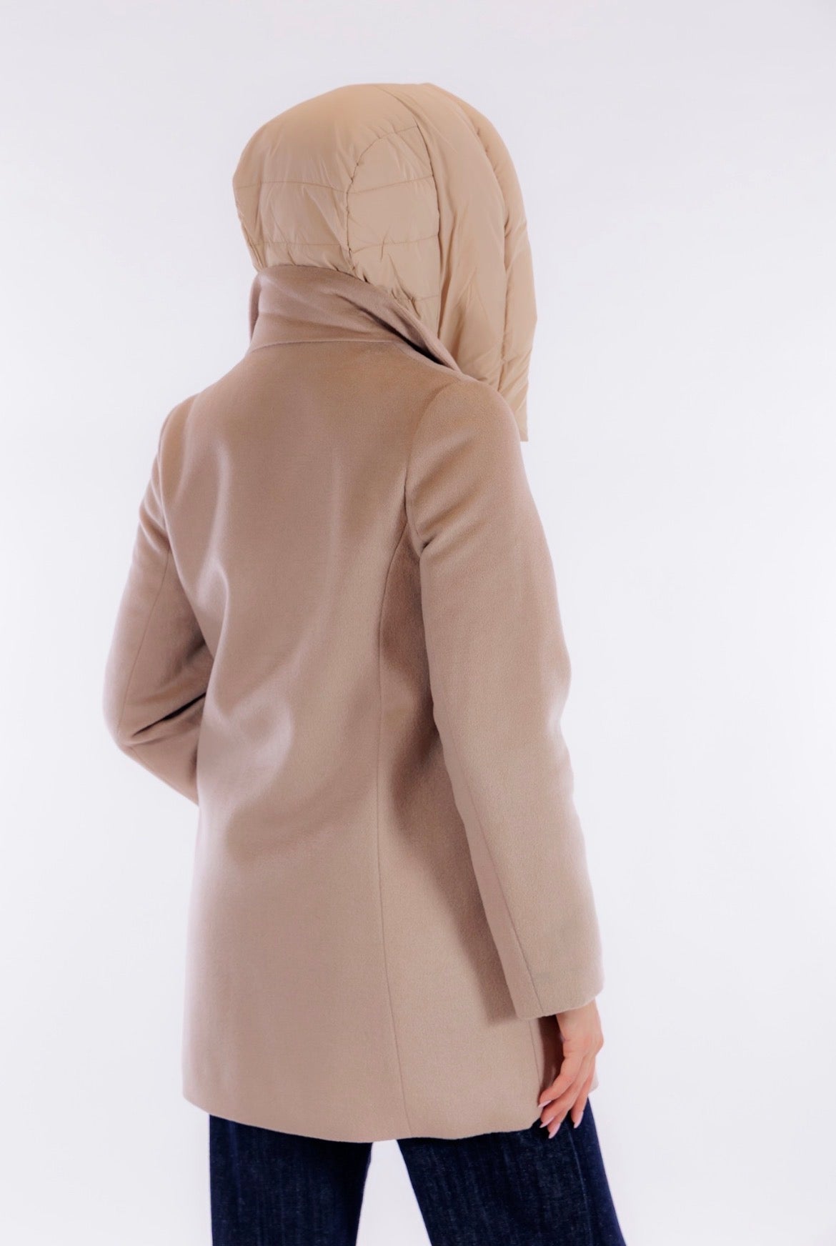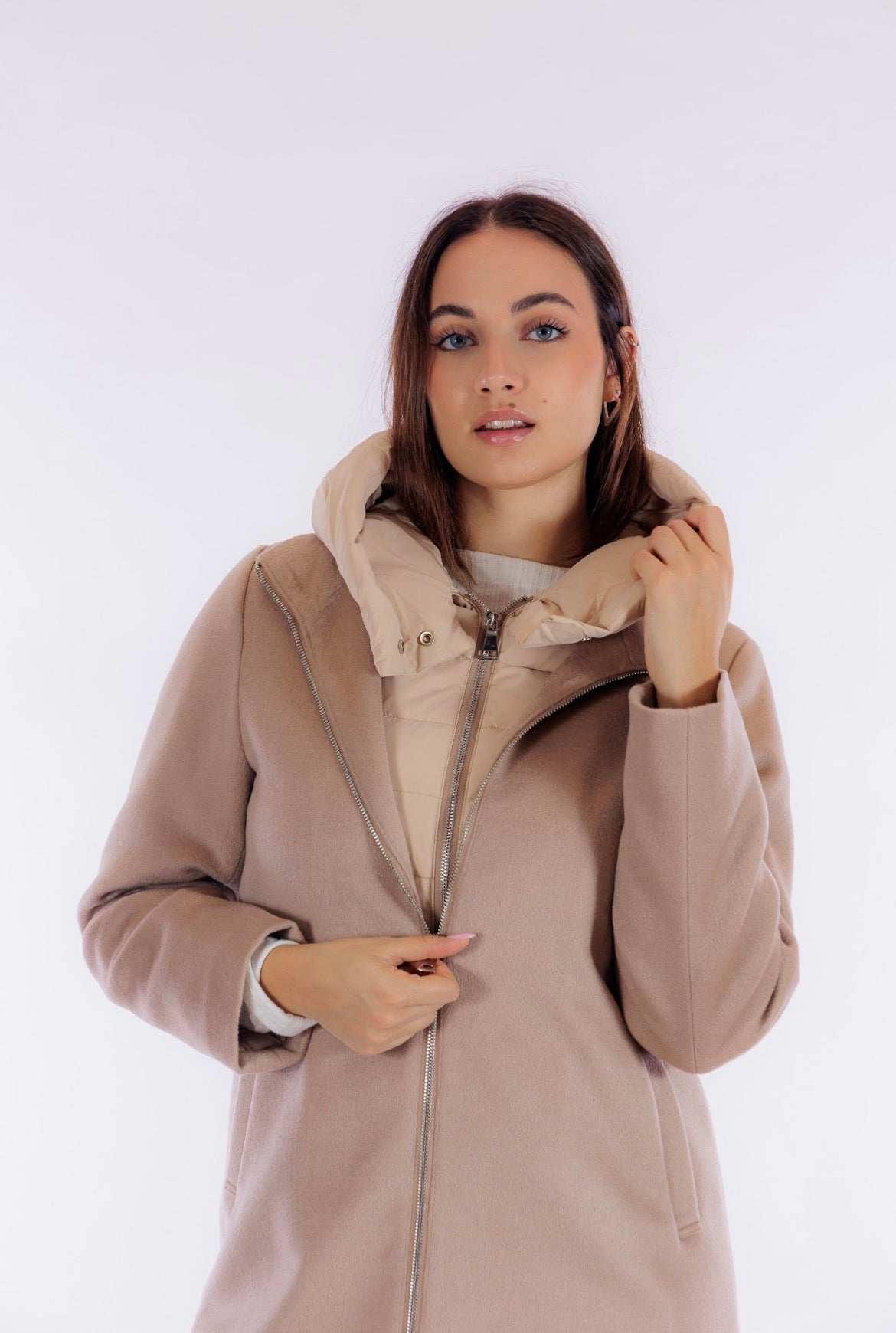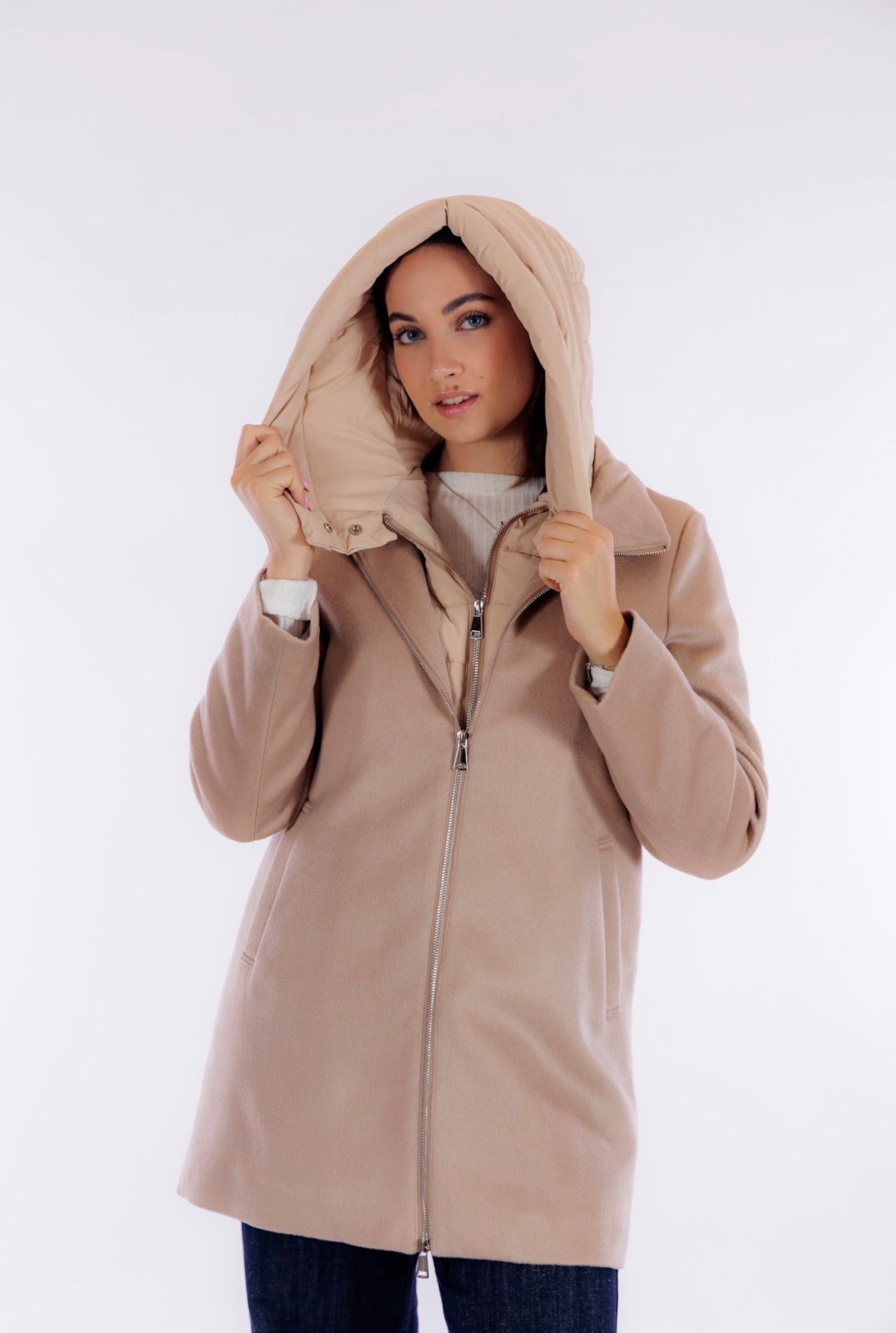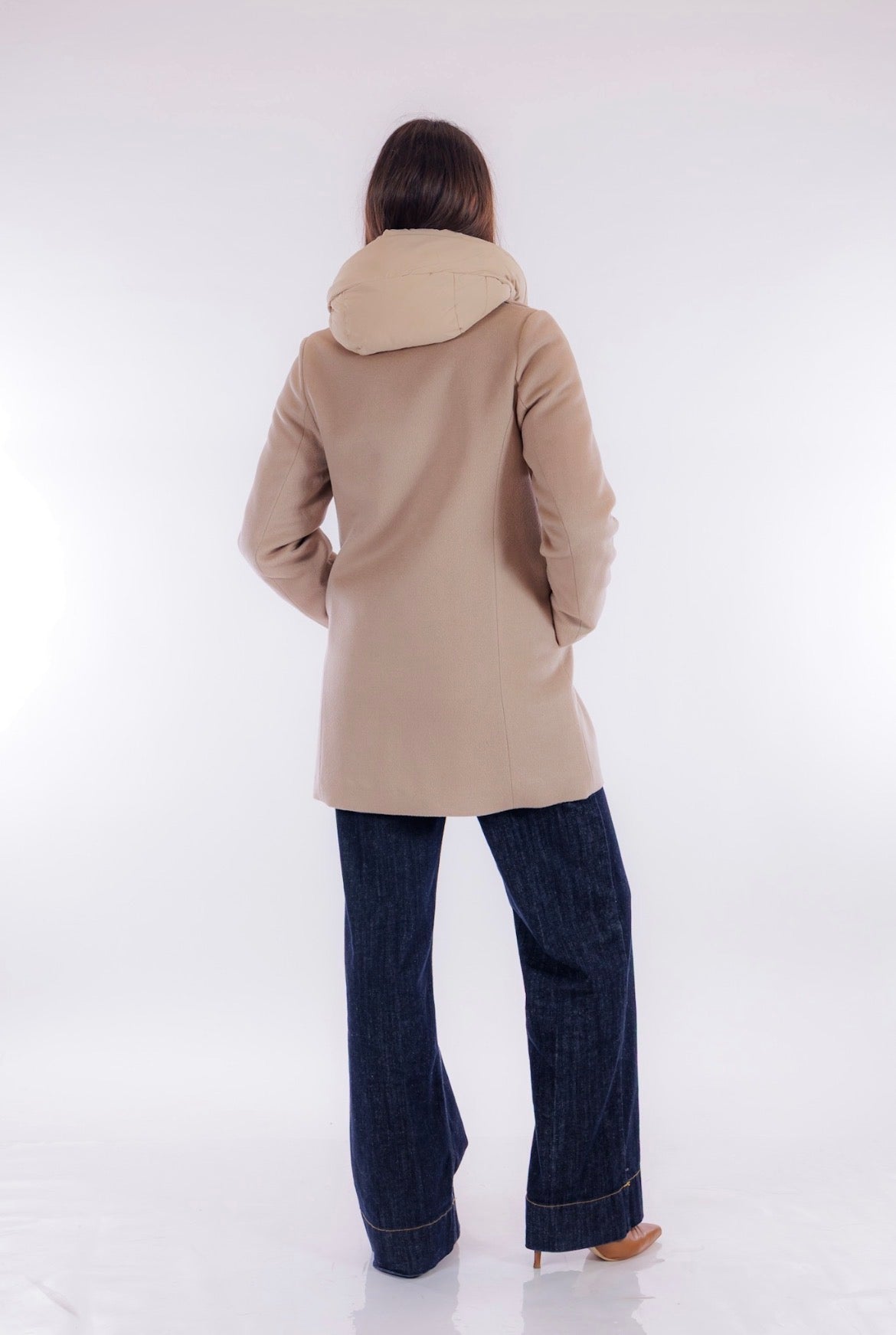 Una giacca cappottino rivestito esternamente in lana, lungo fino al ginocchio, quindi ideale per proteggerti dal freddo. Con il suo cappuccio imbottito e impermeabile e bottoni metallici per chiudere il collo, ti terrà al caldo anche nei giorni più ventosi. Inclusi ne design ci sono anche due tasche frontali e profonde. La particolarità è nella parte di imbottitura che, grazie alla presenza di due zip nascoste, permette di rimuovere facilmente il cappuccio. Così potrai avere un look ancora più chic e curato.