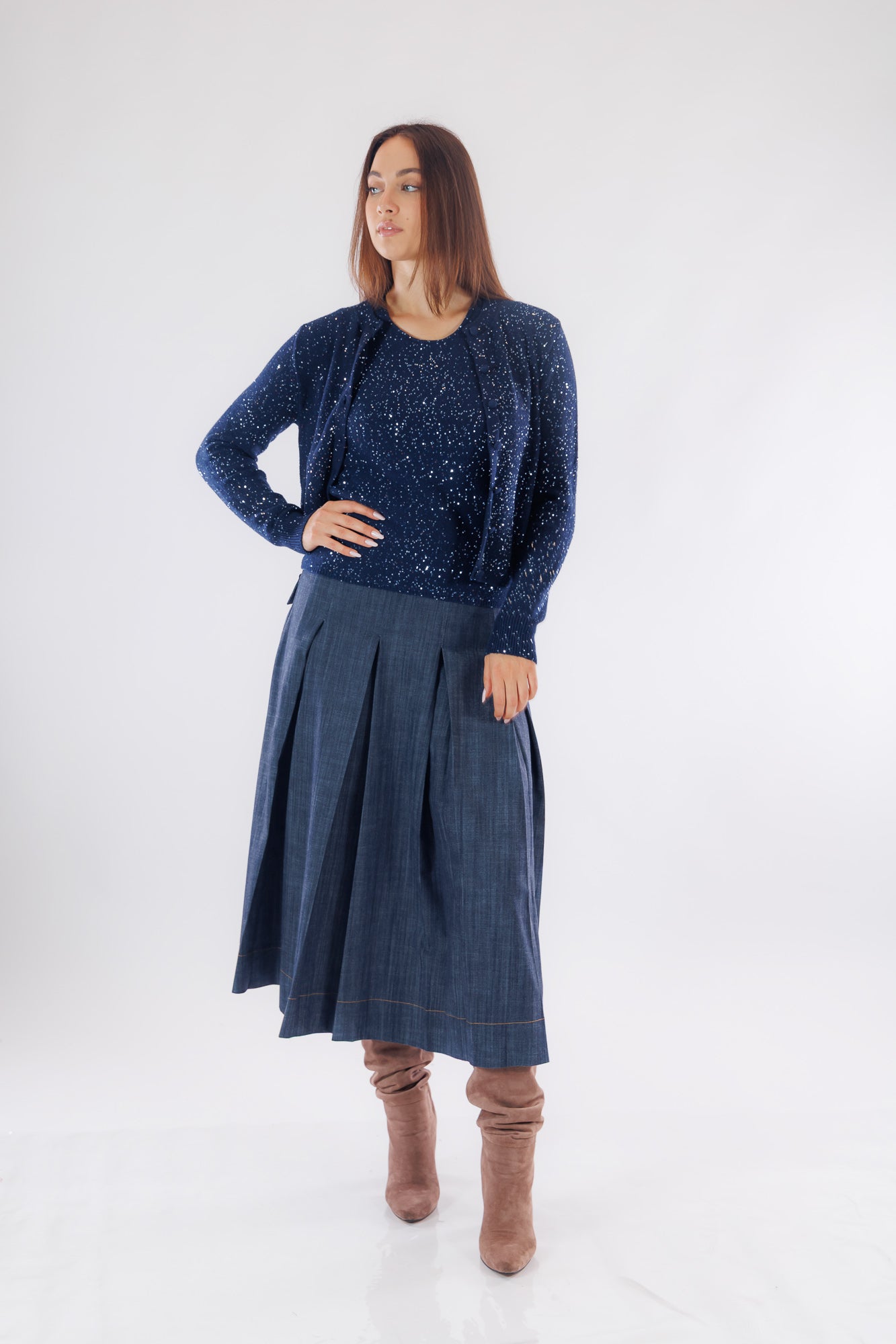 Consigliamo di completare il look con il suo "Top micro paillettes", sempre di No-Nà, per completare il twinset.