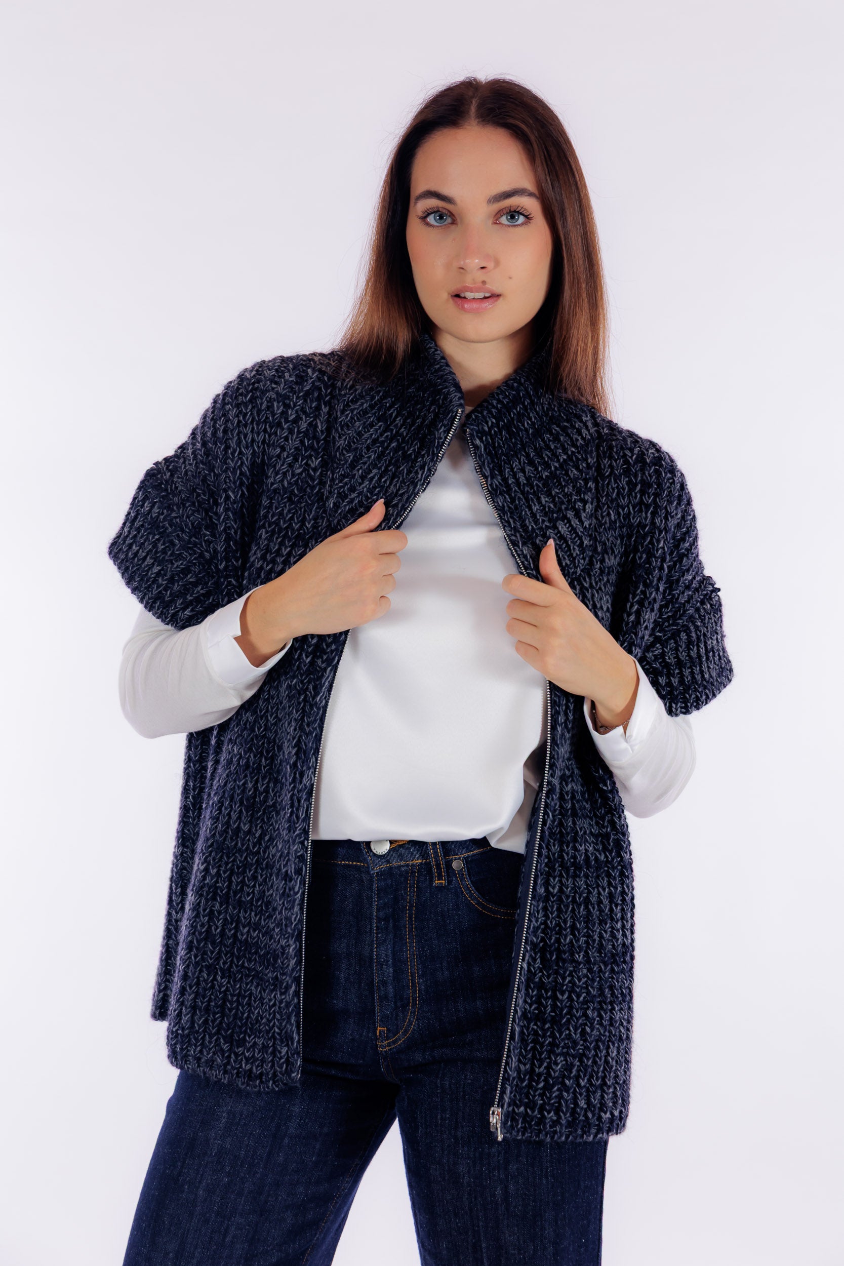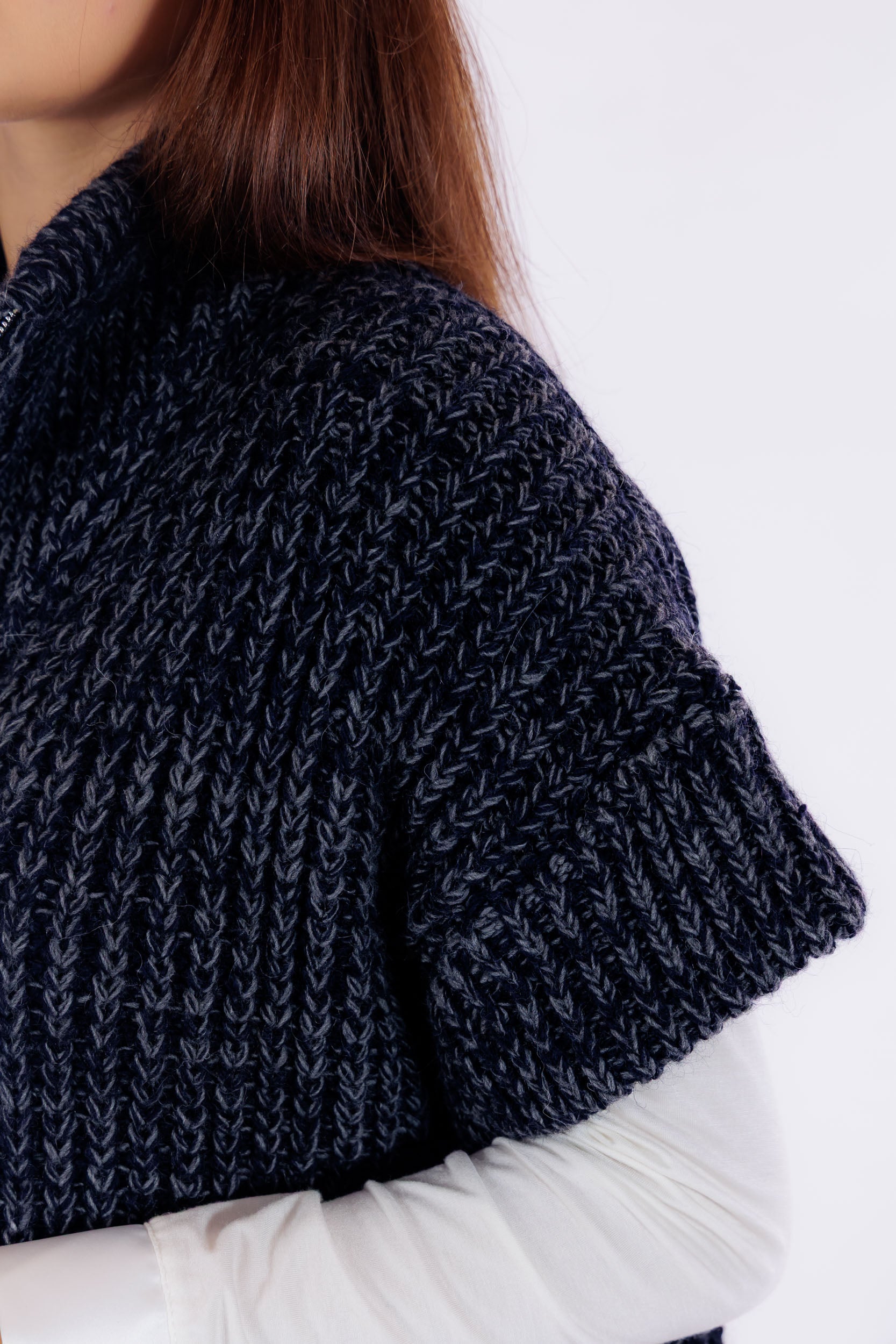 Questo gilet dalla vestibilità over presenta mezze maniche e un collo alto con cerniera centrale, garantendo comfort e protezione. La lunghezza al bacino lo rende versatile e facile da abbinare, mentre il tessuto caldo e morbido assicura una piacevole sensazione di caldo. Perfetto sopra una maglia basica, è ideale per aggiungere uno tocco di stile ad un outfit quotidiano.