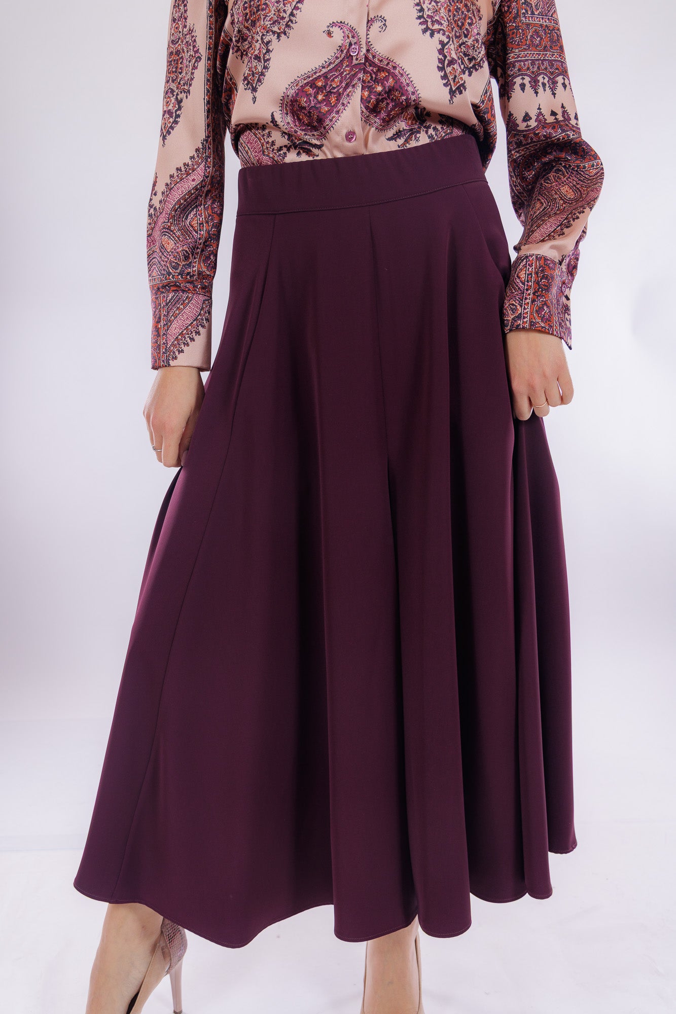 Questa gonna a ruota è perfetta per una donna chic e di classe. Con il suo cinturino elasticizzato in vita e le tasche davanti è comodo e non segna. Inoltre questa gonna è impreziosita da un faldoncino elegante davanti e da una pratica zip posteriore.